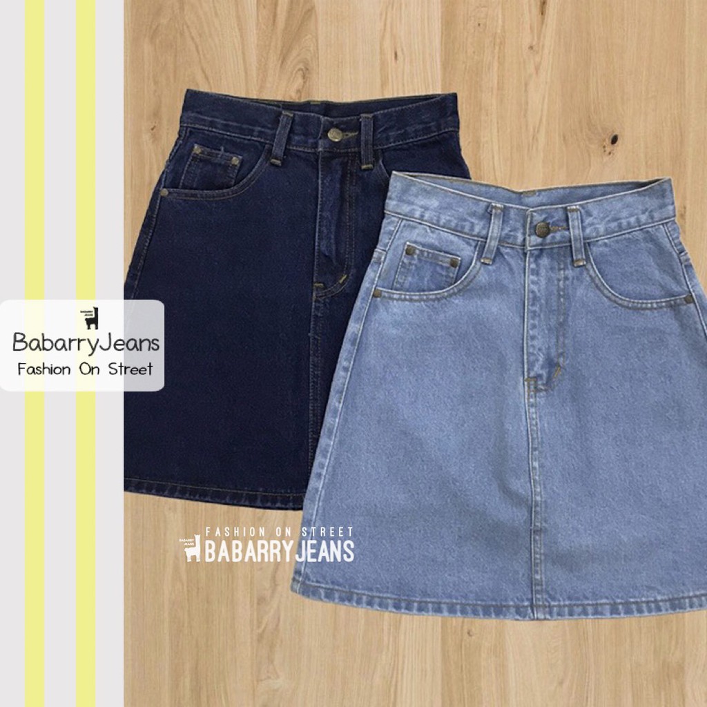 BabarryJeans กระโปรงยีนส์ วินเทจ เอวสูง ผ้าไม่ยืด รุ่นคลาสสิค (ORIGINAL) ยาว 17 นิ้ว สียีนส์เข้ม / สียีนส์อ่อน