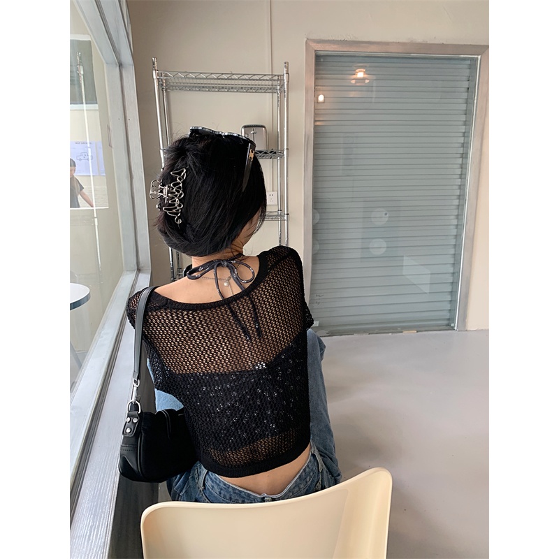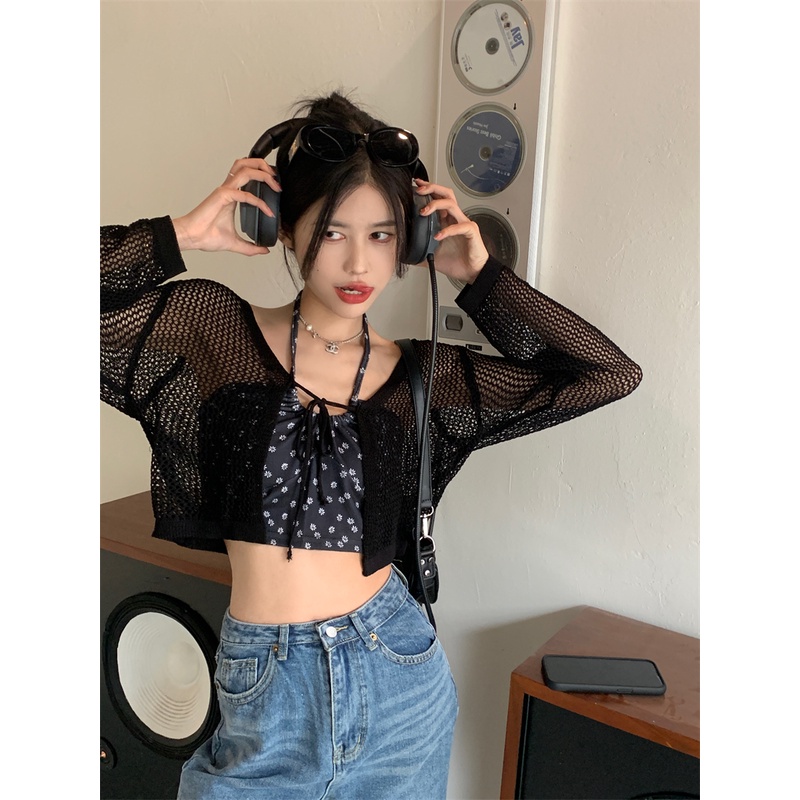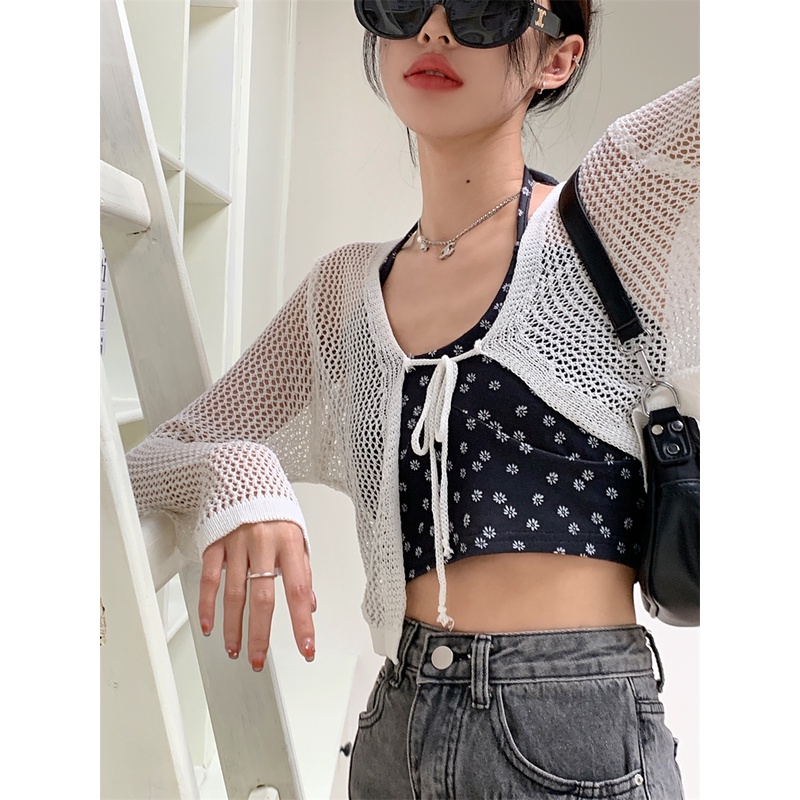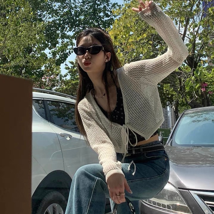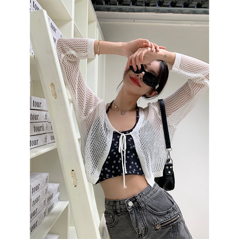 เสื้อคาร์ดิแกน ผ้าถัก แบบบาง เข้ารูป เข้ากับทุกการแต่งกาย แฟชั่นฤดูร้อน สีพื้น แบบเรียบง่าย สําหรับผู้หญิง