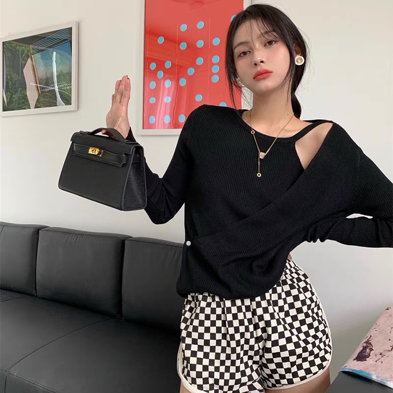 Suxi เสื้อยืดคอกลมแขนยาวผู้หญิงสไตล์เกาหลี Tops