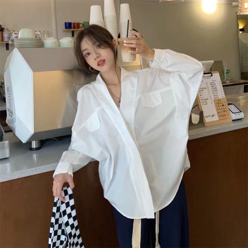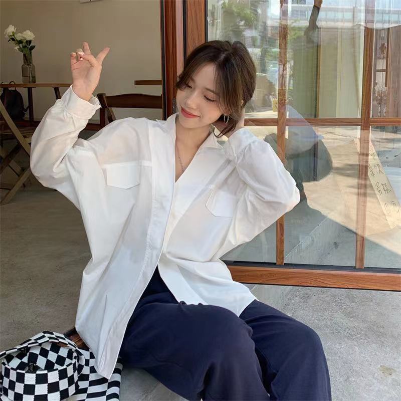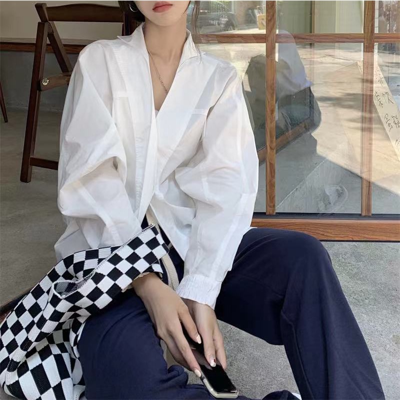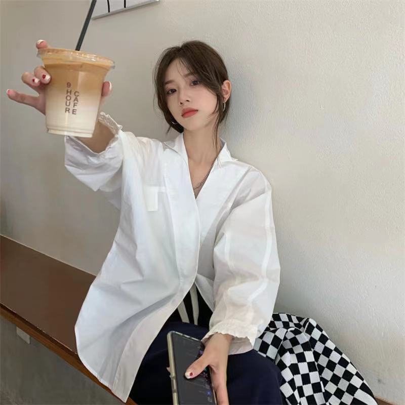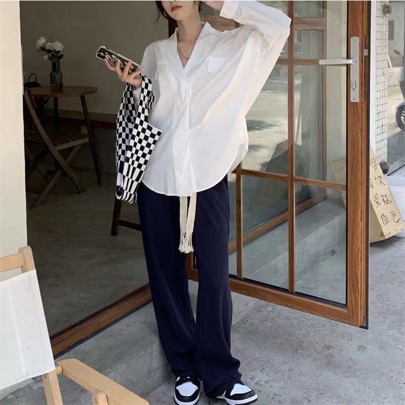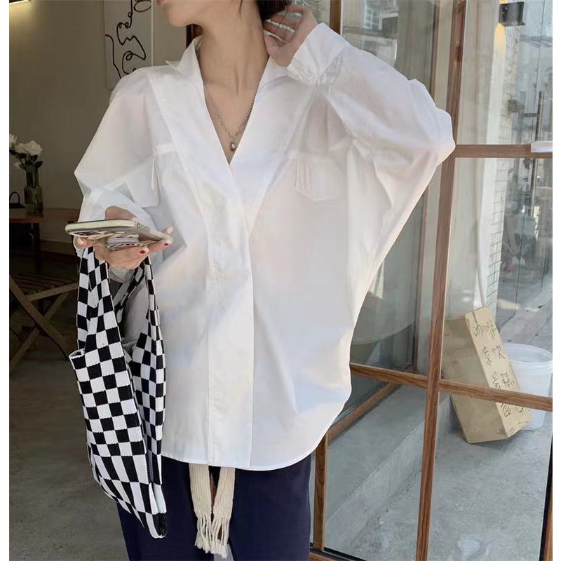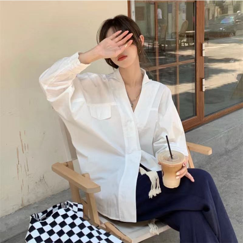 Suxi ใหม่เสื้อลําลองสําหรับสตรีแขนยาวคอวีทรงหลวมสไตล์เกาหลี