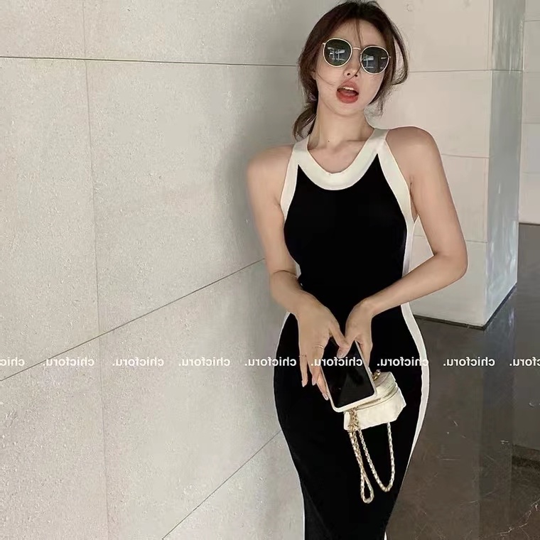ชุดแม็กซี่เดรส คอกลม แขนกุด ผ้าถัก เรียบง่าย แฟชั่นฤดูร้อน สําหรับผู้หญิง