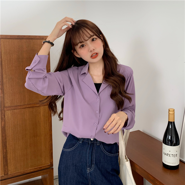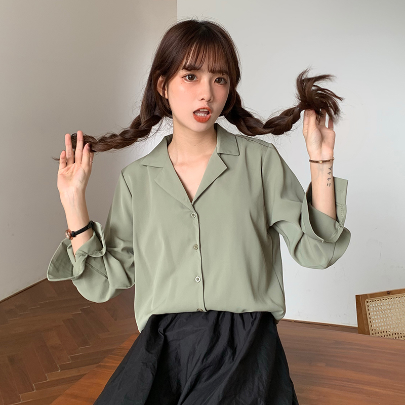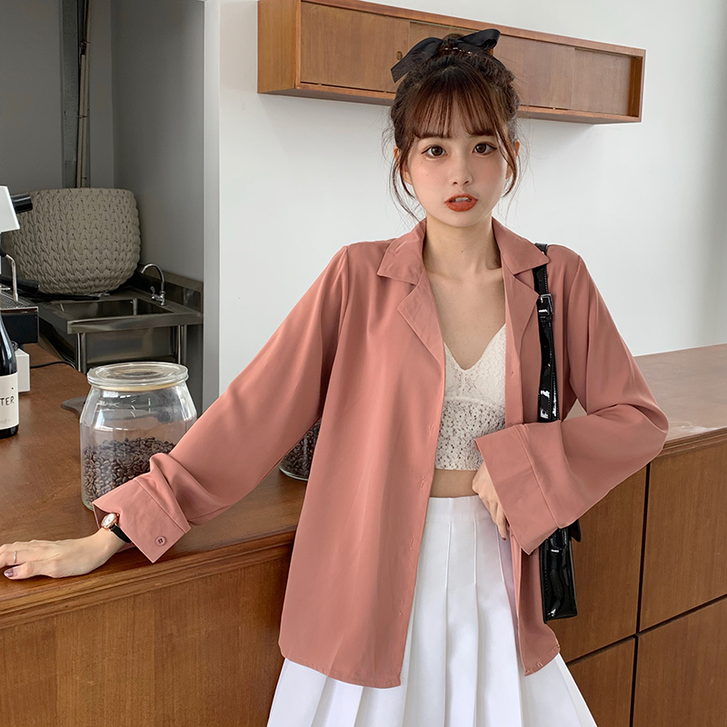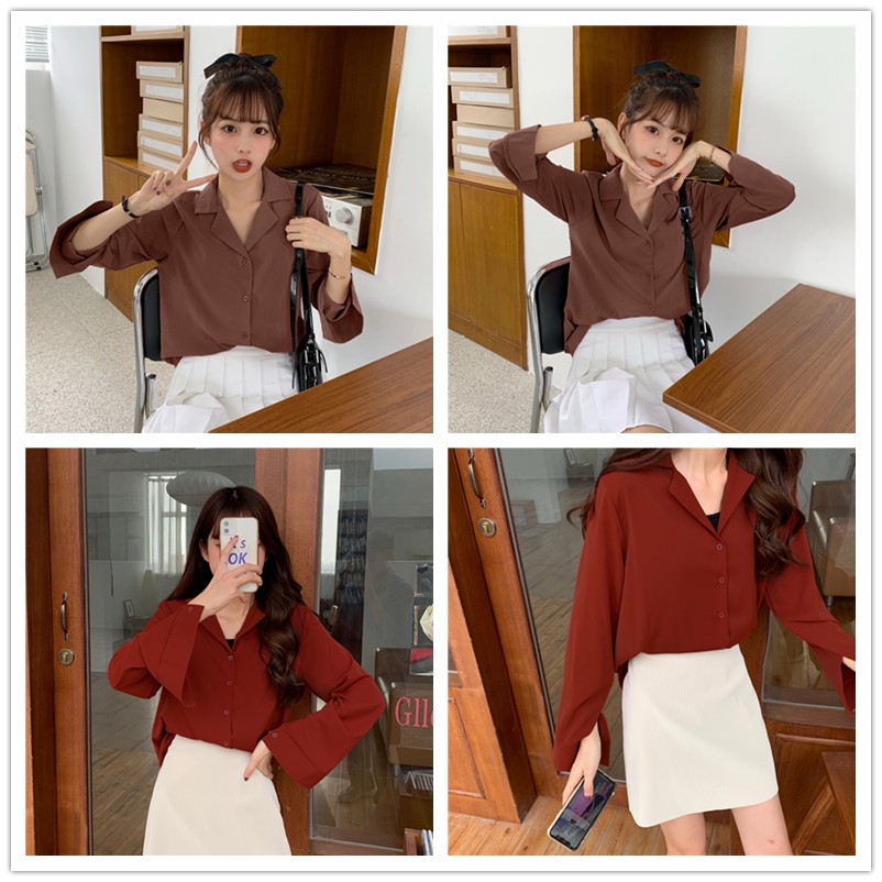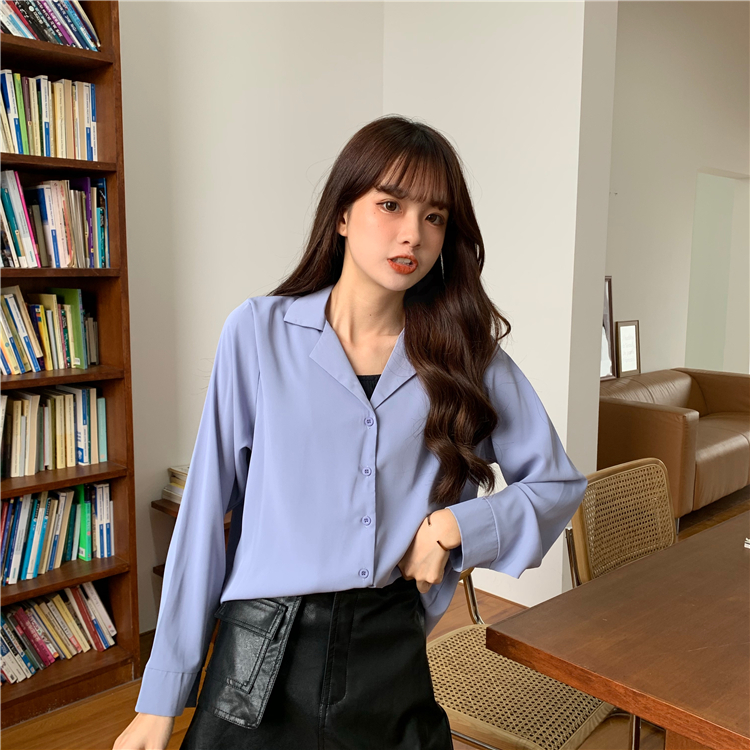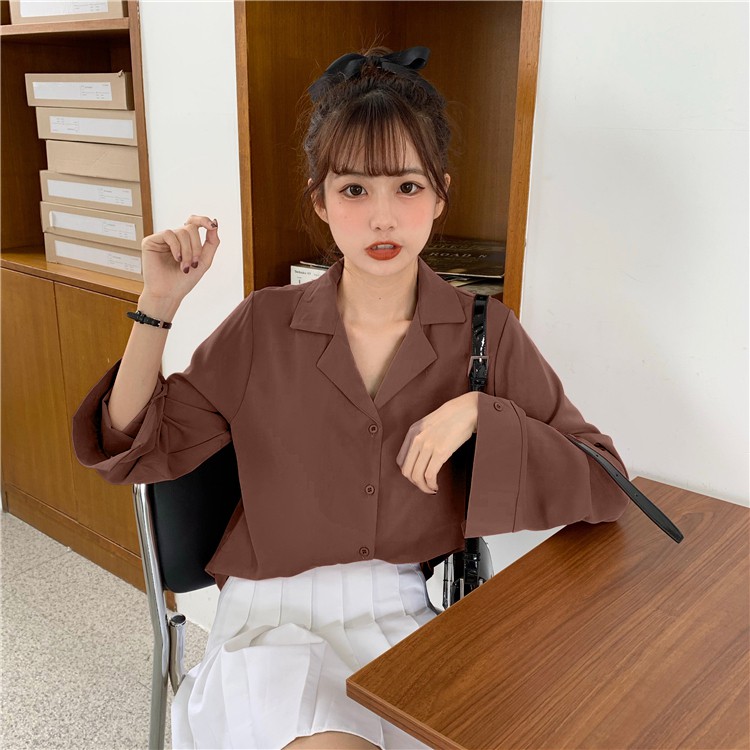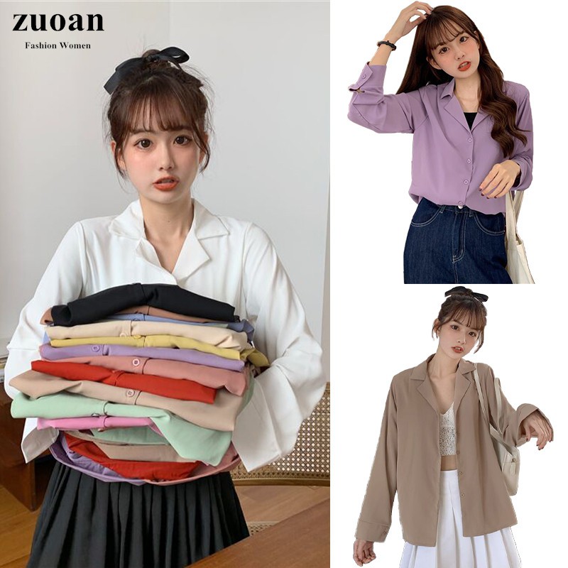 Suxi เสื้อเชิ้ตแขนยาว สีพื้น สำหรับผู้หญิง