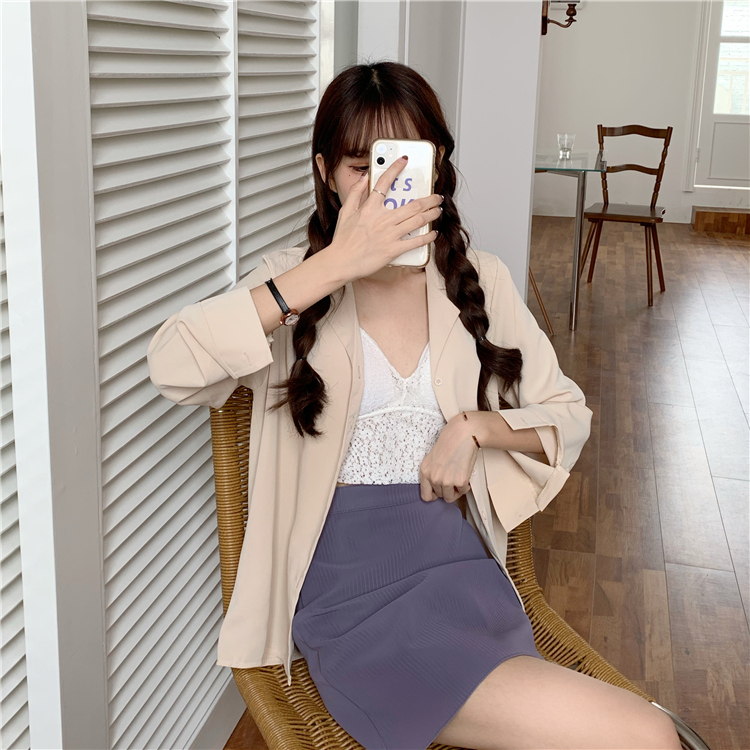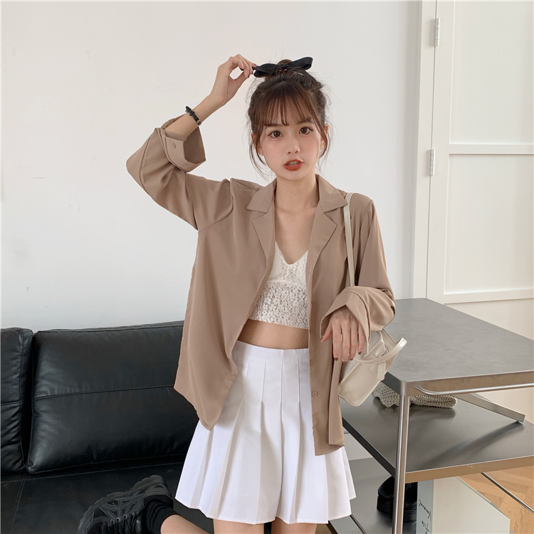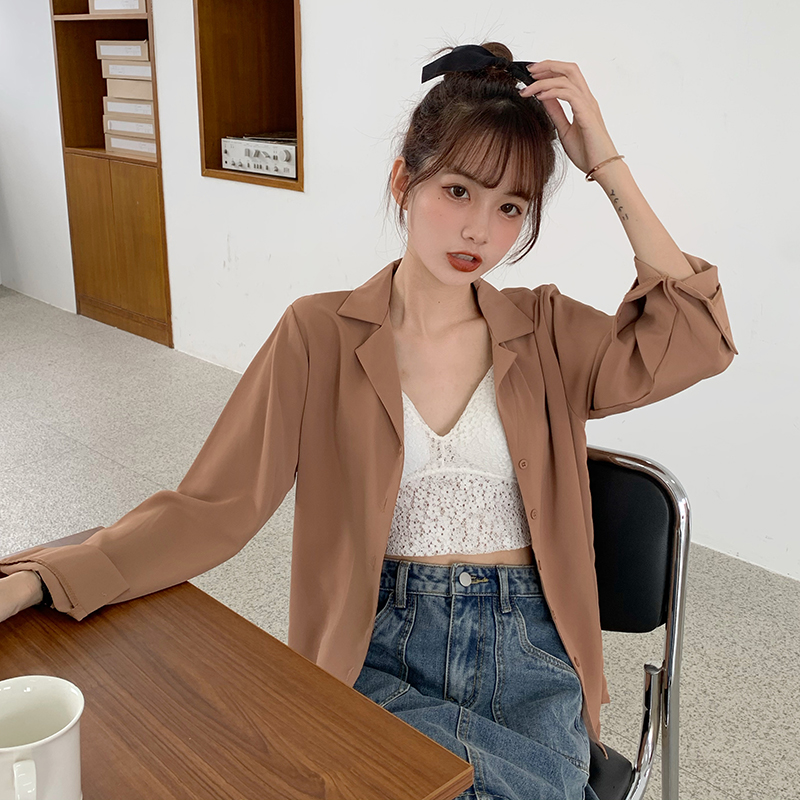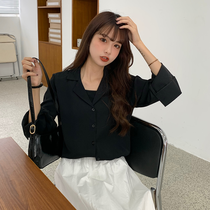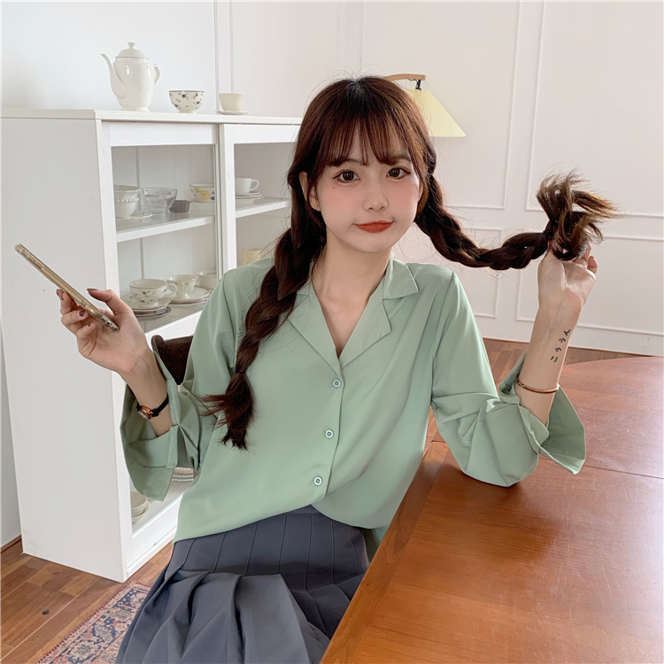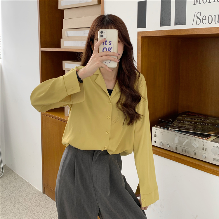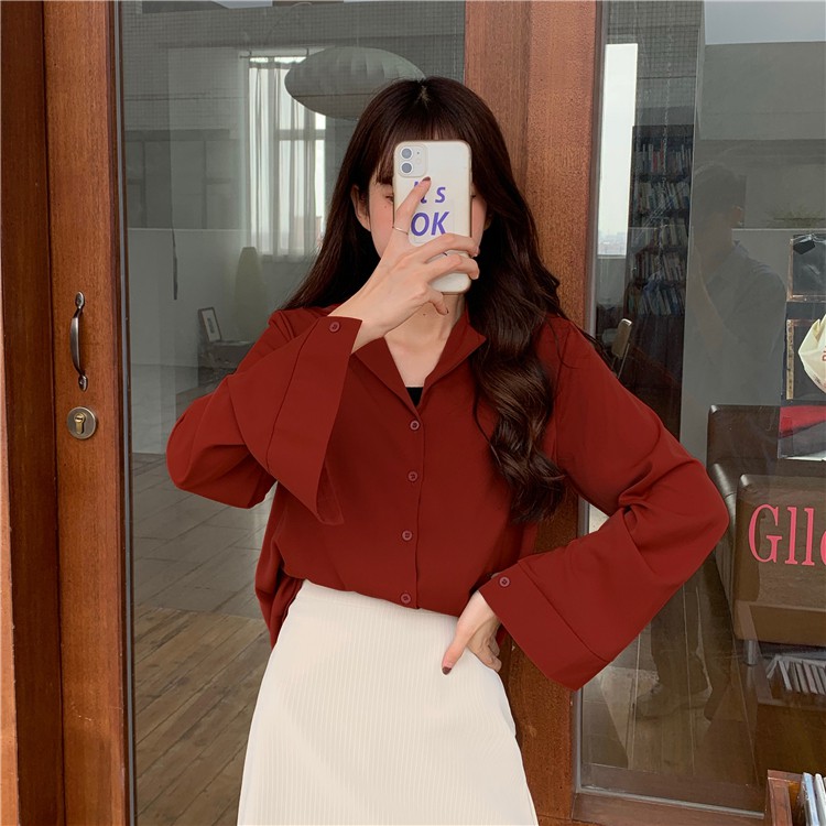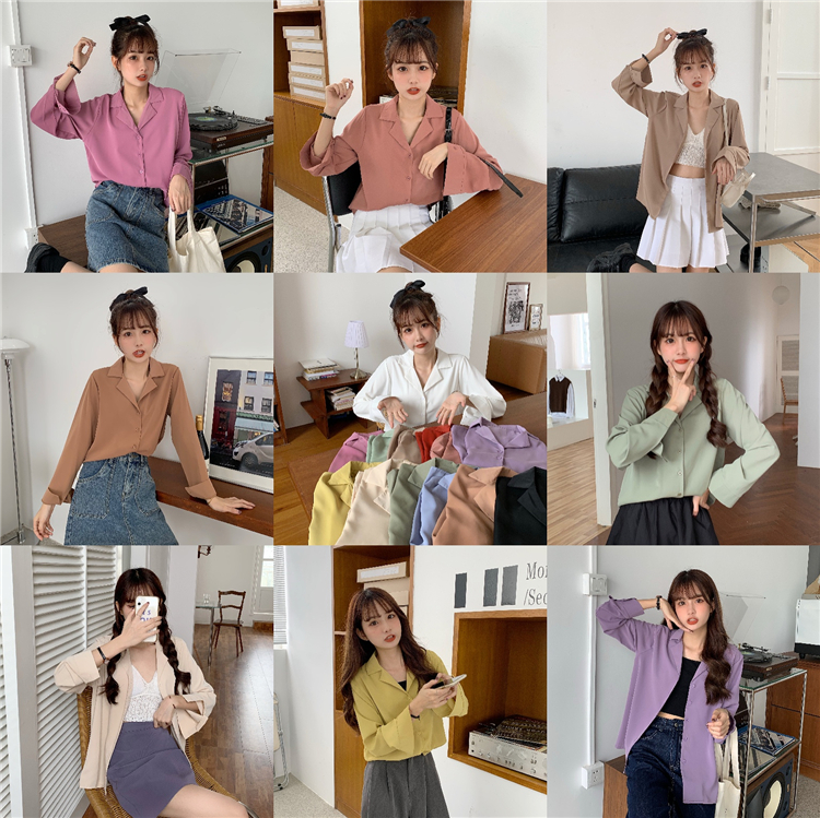 Suxi เสื้อเชิ้ตแขนยาว สีพื้น สำหรับผู้หญิง