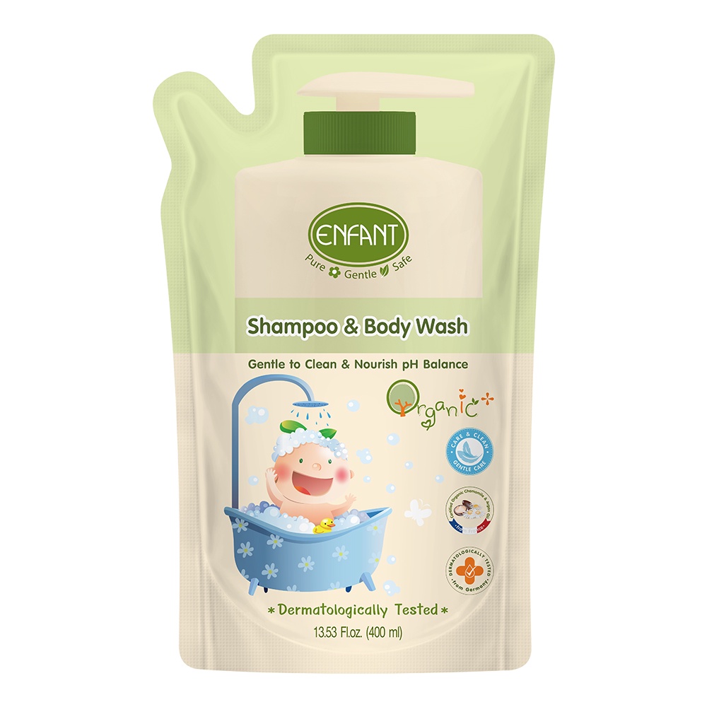 Enfant (อองฟองต์) เซตสุดคุ้ม แชมพูและครีมอาบน้ำ ORGANIC SHAMPOO & BODYWASH 1ถุงแถม1ถุง