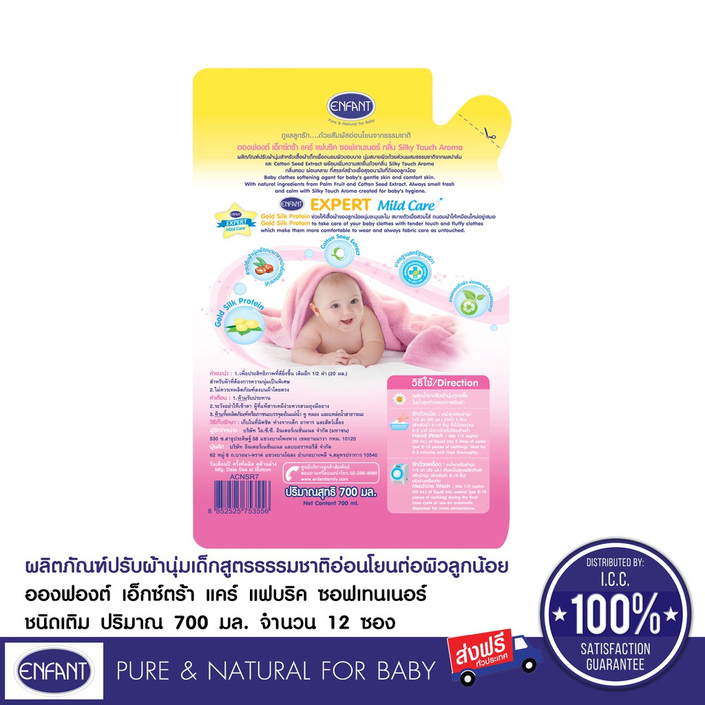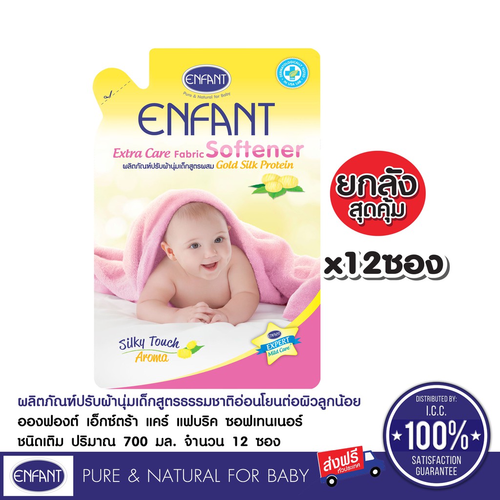 Enfant (อองฟองต์) ผลิตภัณฑ์ปรับผ้านุ่มสำหรับเด็กแรกเกิดและถนอมผิวบอบบาง สูตรผสม Gold Silk Protein 1ลัง/12ซอง