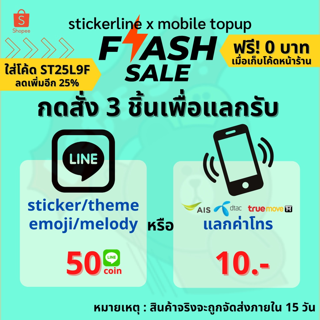 สติ๊กเกอร์ไลน์ 3 บาท I ต้องกดสั่ง 3 ชิ้นเพื่อรับลาย 50© หรือค่าโทรมูลค่า 10 บ.