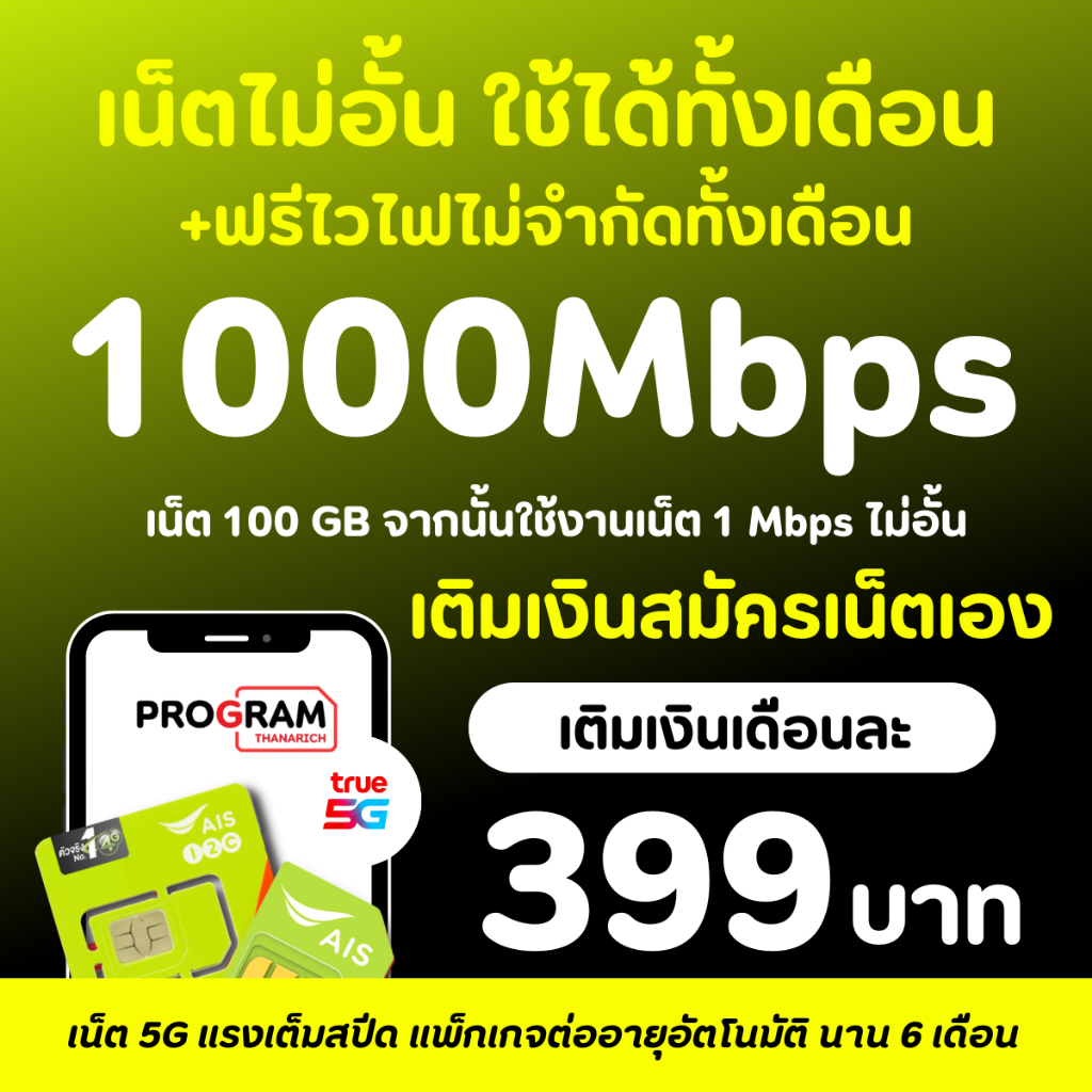 ซิมเทพ AIS เอไอเอส ซิมทรู ซิมเน็ตที่คุ้มที่สุด เน็ตเต็มสปีด โทรฟรีทุกค่าย เก็บเงินปลายทาง