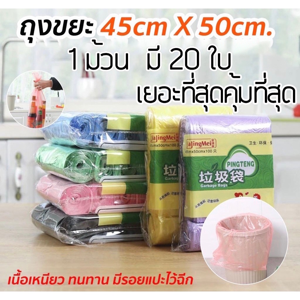 ถุงขยะ 45×50 ซม. 1 ม้วน 20 ใบ เนื้อเหนียว ไม่สกปรก ถุงขยะอเนกประสงค์ ถุงขยะแบบม้วน
