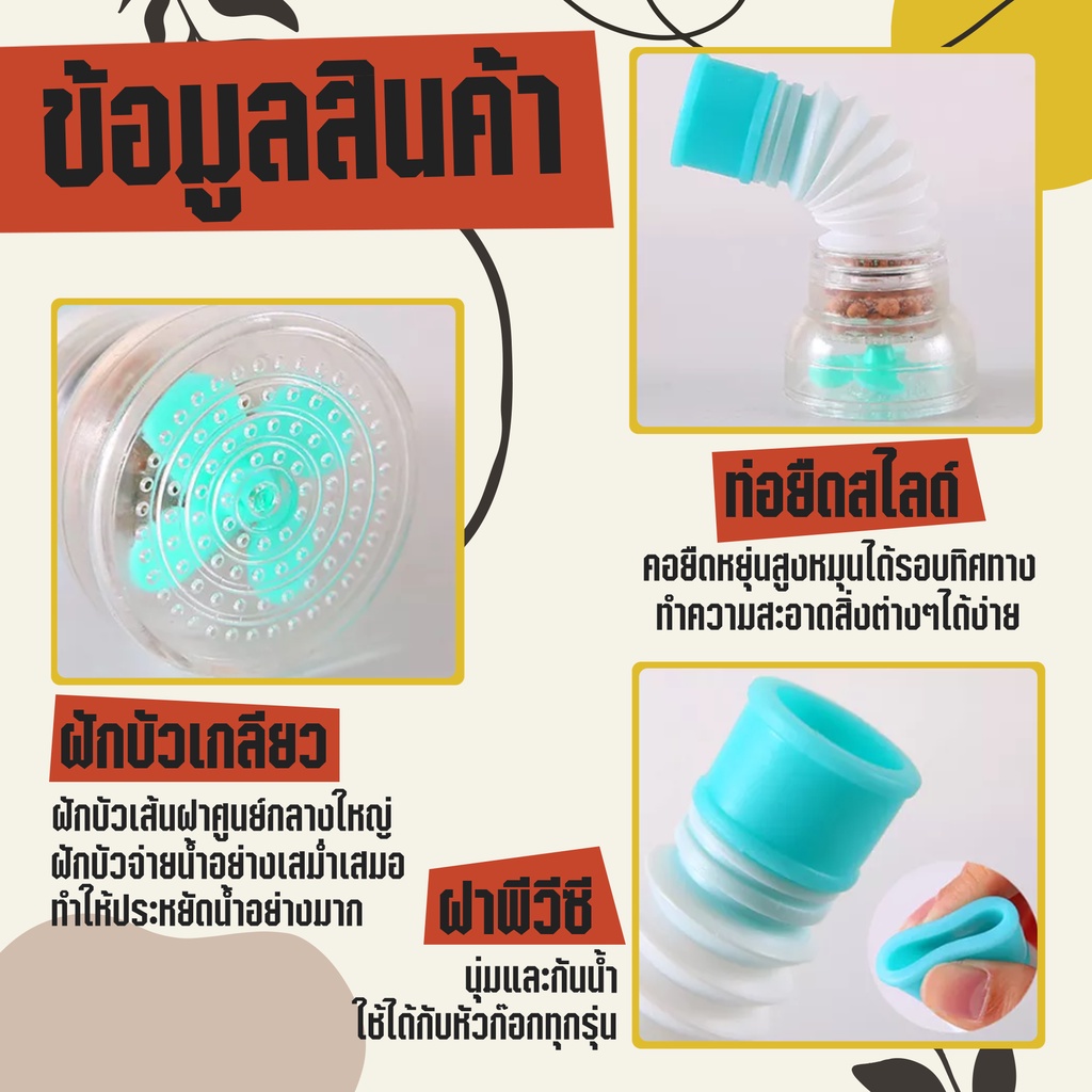 หัวต่อก๊อกน้ำ กันน้ำกระเด็น ก็อกน้ำอุปกรณ์ประหยัดน้ำของใช้ในครัว ก๊อกต่อหมุนได้ 360 องศา มี 3 สี