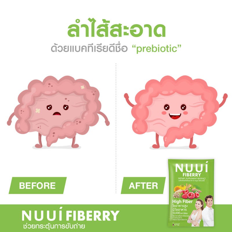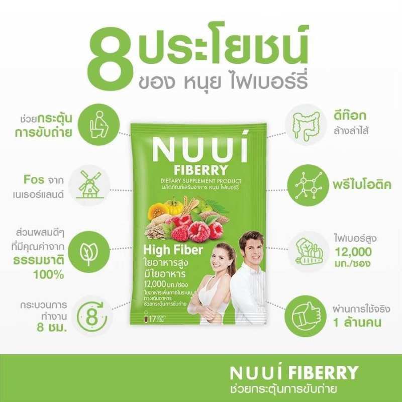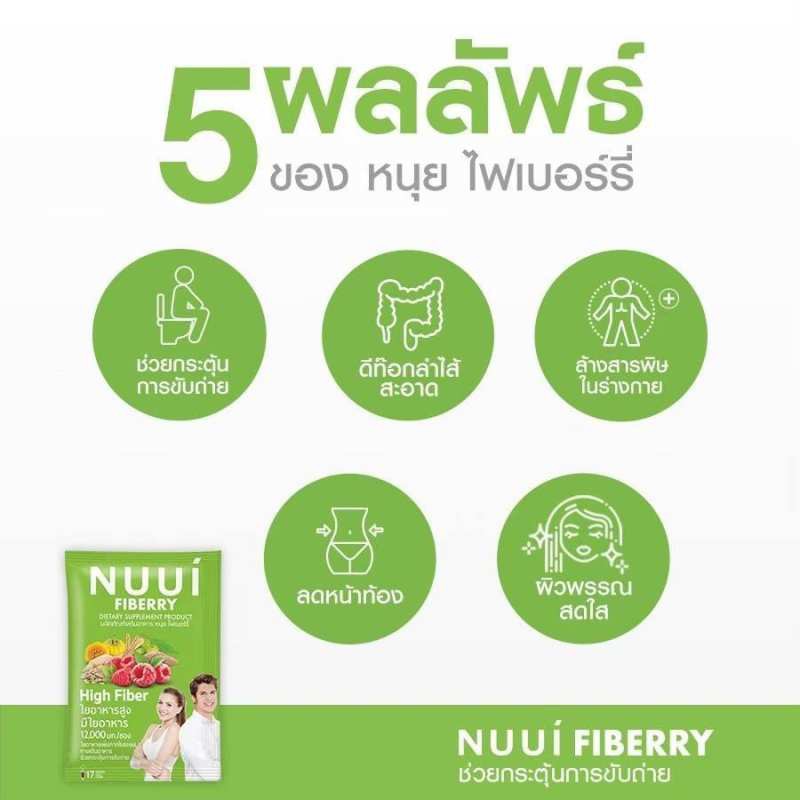 NUUI Fiberry หนุย ไฟเบอร์รี่ [10 ซอง - สีเขียว] ใยอาหารสูง