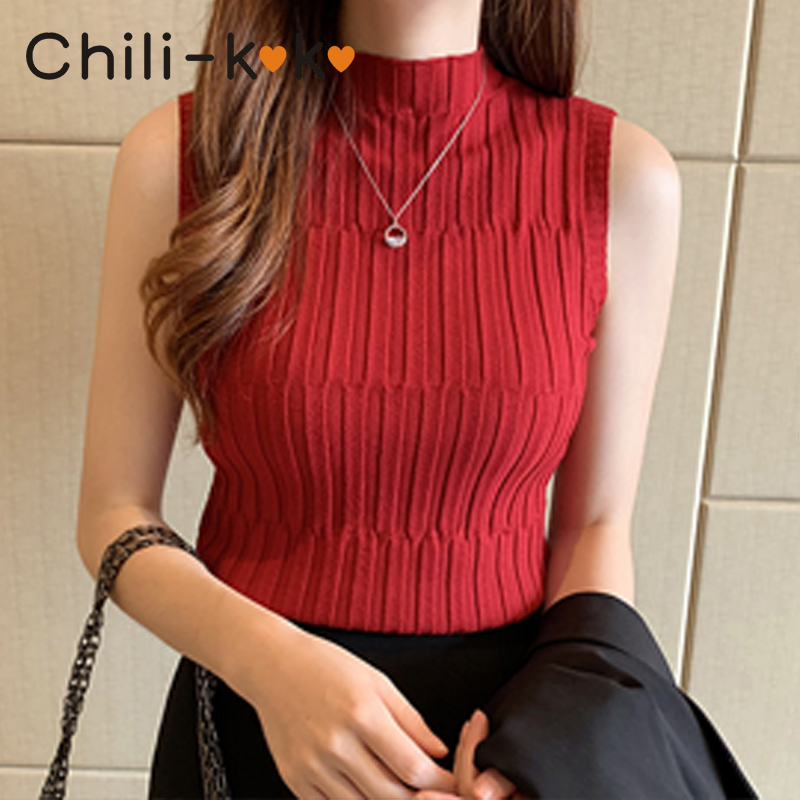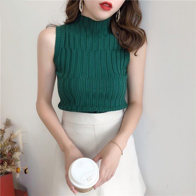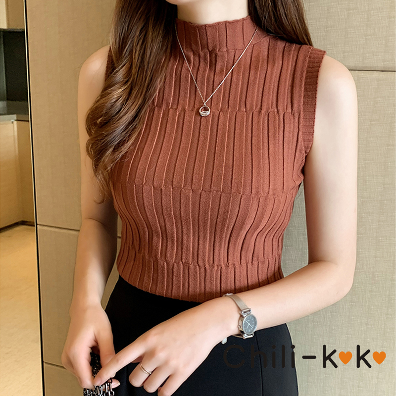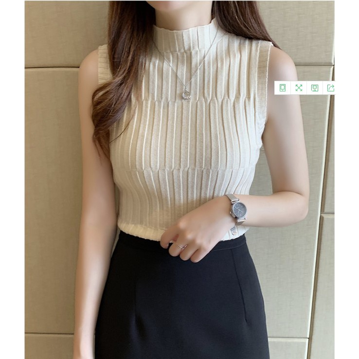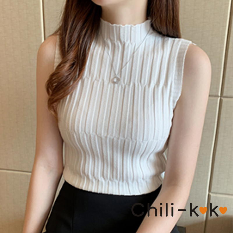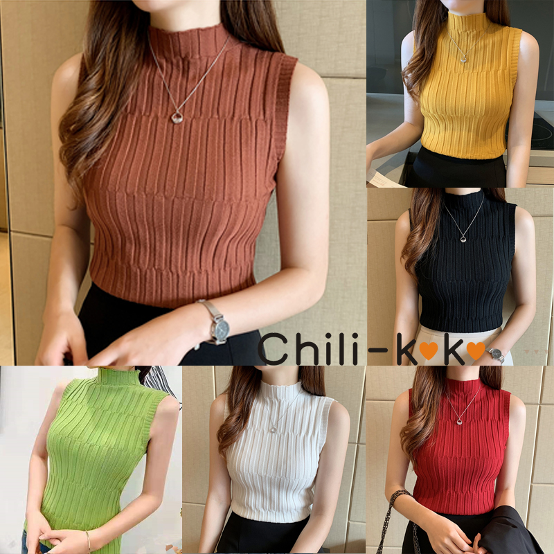 Chili_k❤️k❤️ 476 เสื้อท็อปแขนกุด ผ้าไหมพรม ขึ้นลาย คอเต่า ใส่ตัวเดี่ยว หรือ INNER สุดเซ็กซี่ แฟชั่นสาว OFFICE