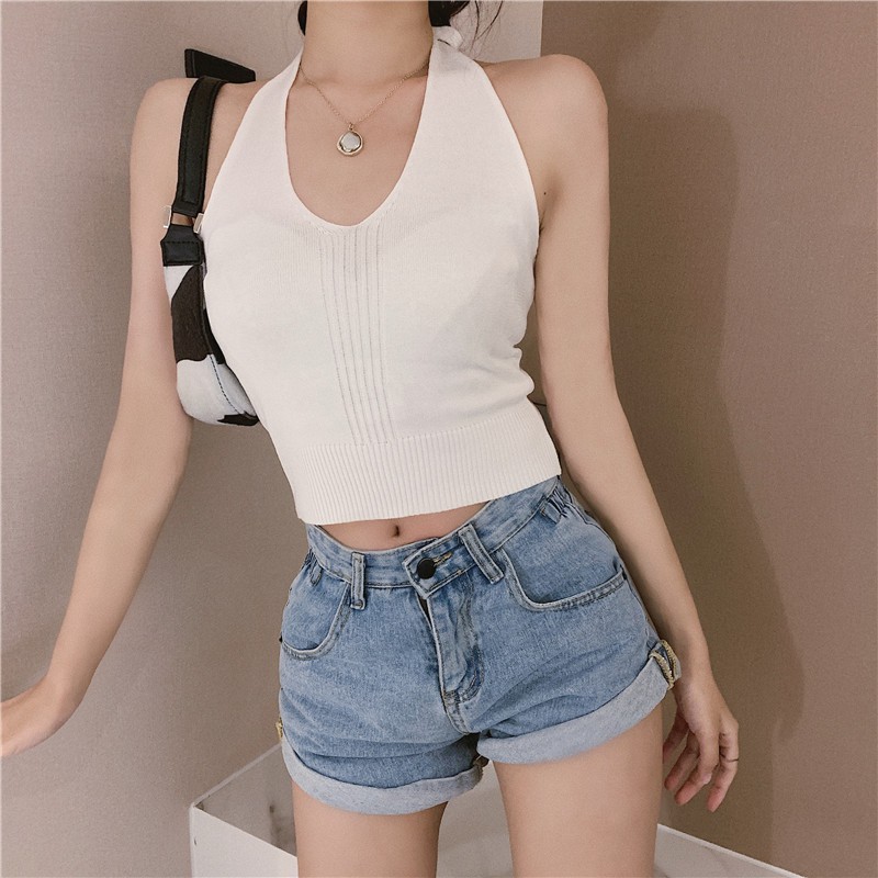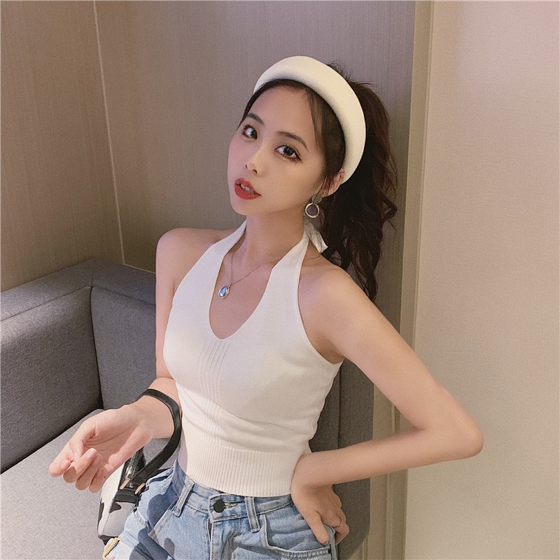 Chili_k❤️k❤️ 362 เสื้อสายเดี่ยวผูกคอ โชว์หลัง คอวี แขนเว้า ผ้าไหมพรม เนื้อบาง สไตล์เกาหลี สุดเซ็กซี่