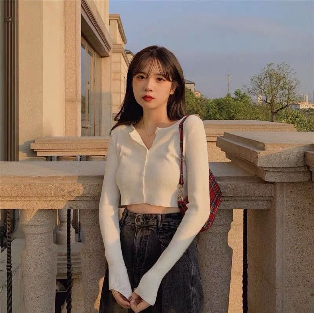 Chili_k❤️k❤️ 5203 ***พร้อมส่ง*** เสื้อ Cardigan แขนยาว สีพื้น กระดุกถอดได้ คอกลม สุดปังยุคนี้ต้องแนวนี้
