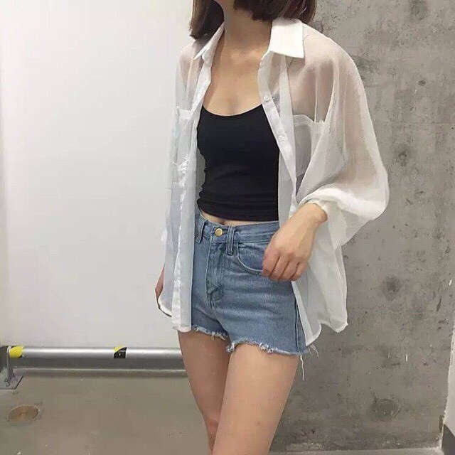 🌵Grace_chili🌵 เสื้อคลุม เสื้อคลุม สไตล์เชิ้ต ผ้าชีฟองเนื้อดี แขนยาว ตัวใหญ่ มีกระเป๋า 2 ข้าง บางพลิ้ว ใส่สบาย 008