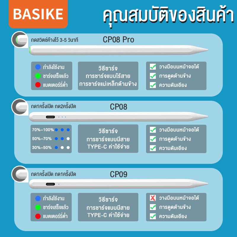 BASIKE ปากกาไอแพด สำหรับ Air5 Air4 Air3 Pro12.9/11 gen10,9,8,7,6 มินิ 6/5 ปากกาสไตลัส Stylus Pencil 2 ปากกาทัชสกรีน