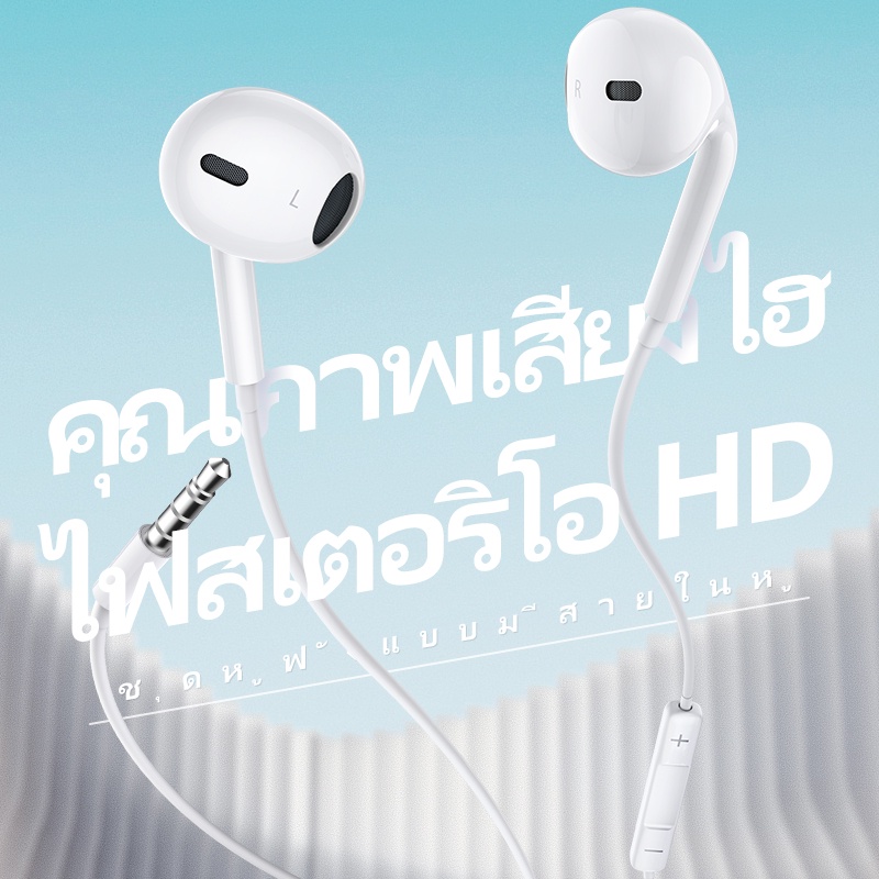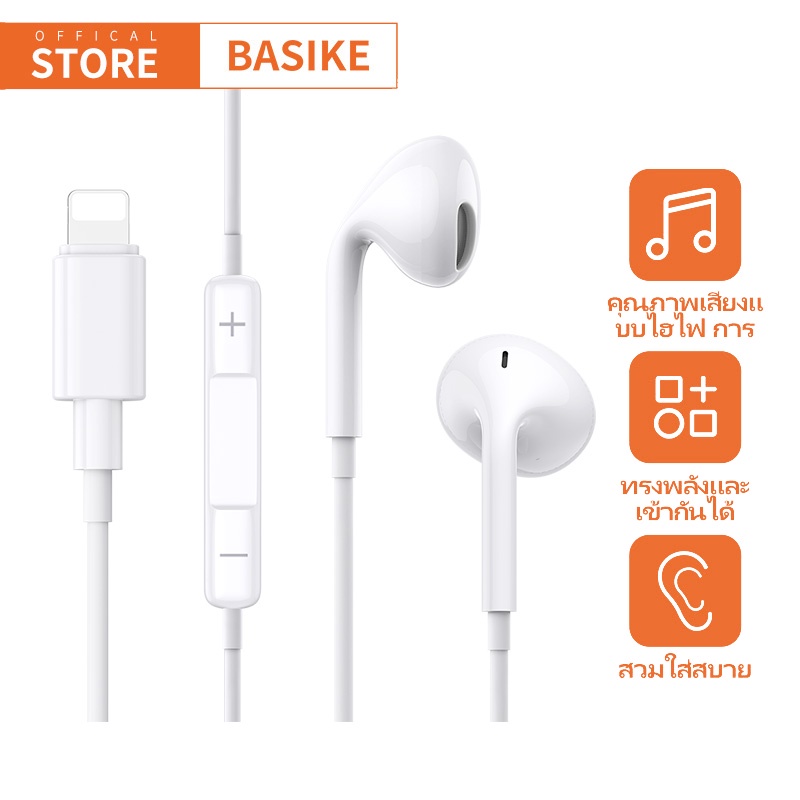 BASIKE หูฟัง หูฟังอินเอียร 3.5mm แบบมีสาย For Samsung Oppo HUAWEI หูฟังใช้สาย ของแท้100% earphone