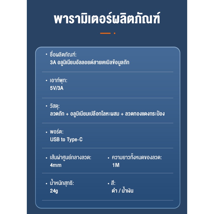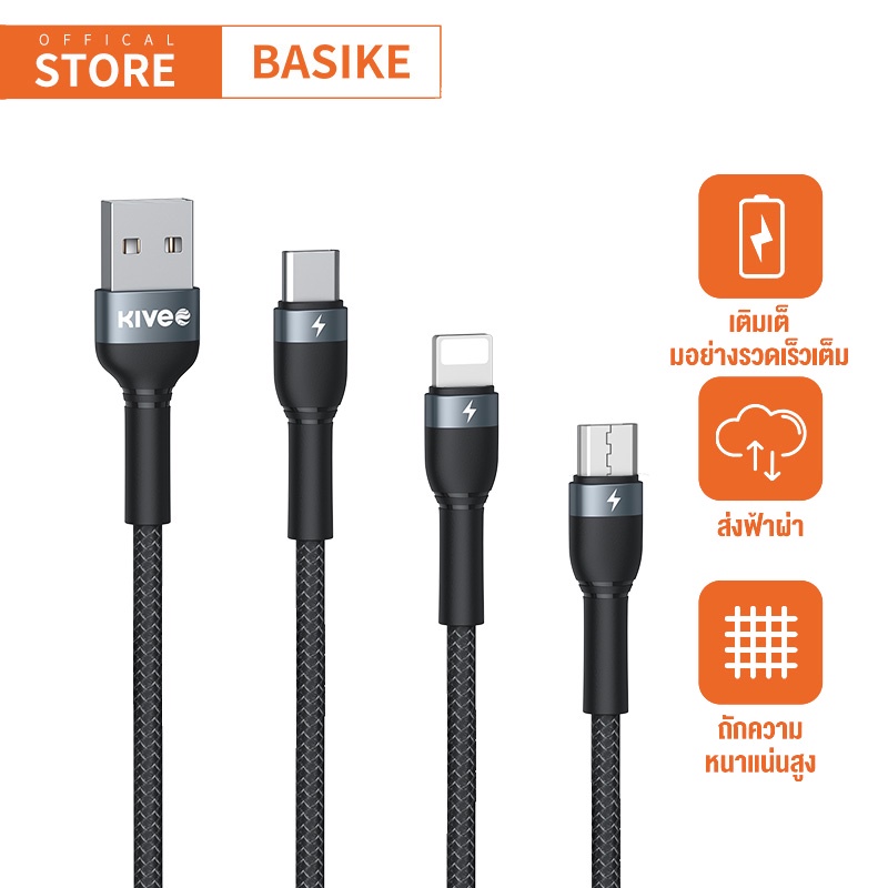 BASIKE สายชาร์จ Type-c USB-C 3A แอมป์ ชนิดไนลอน QC 3.0 Charging Cable