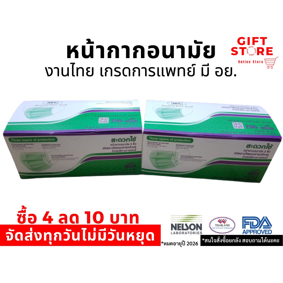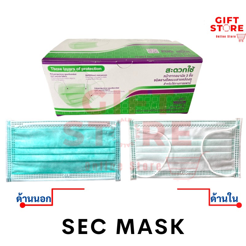 (โค้ด BALEEHERO ลด 20%) หน้ากากอนามัย 3 ชั้น (50 ชิ้นต่อกล่อง) แมส งานไทย SEC Mask สีเขียว ร้านตัวแทนผู้ผลิต พร้อมส่ง