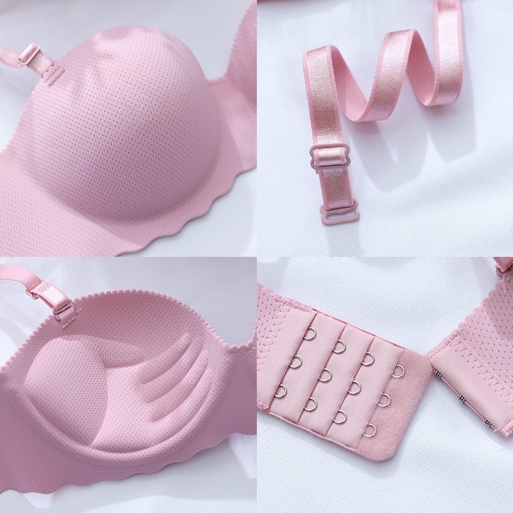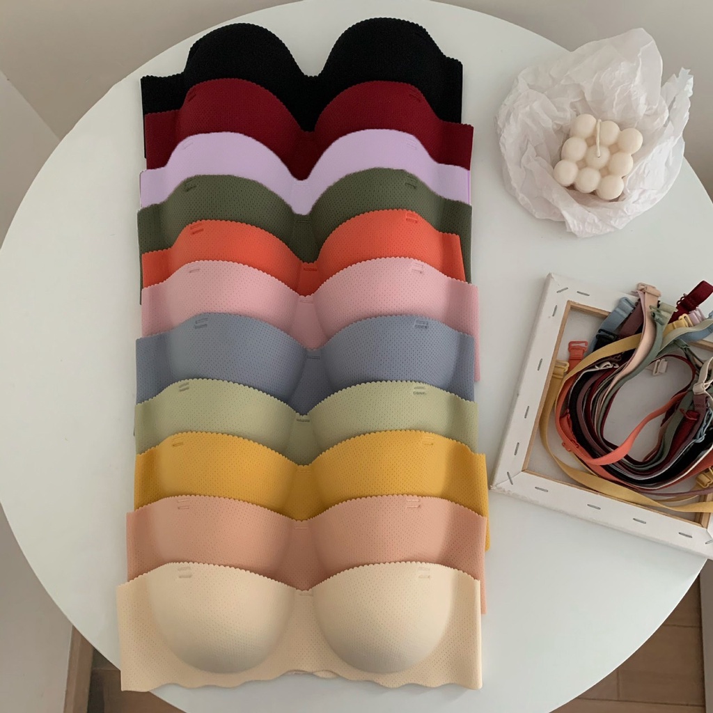 เสื้อชั้นในบราเกาะอก 2in1 ลายรอยหยัก งานเข้าไหม่ไร้รอยต่อ สีพื้น