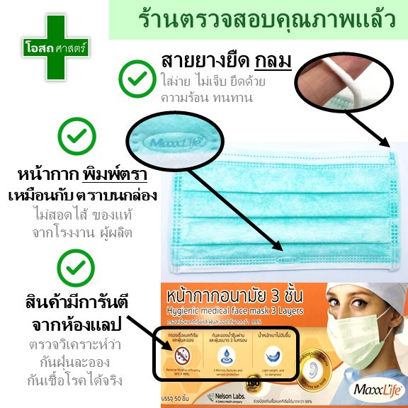 [กล่อง 50 ชิ้น] หน้ากากอนามัย ใช้ทางการ แพทย์ --- ของ ไทย สีเขียว 3 ชั้น ใช้ในโรงพยาบาล แมส มาส์ก อานามัย medical mask