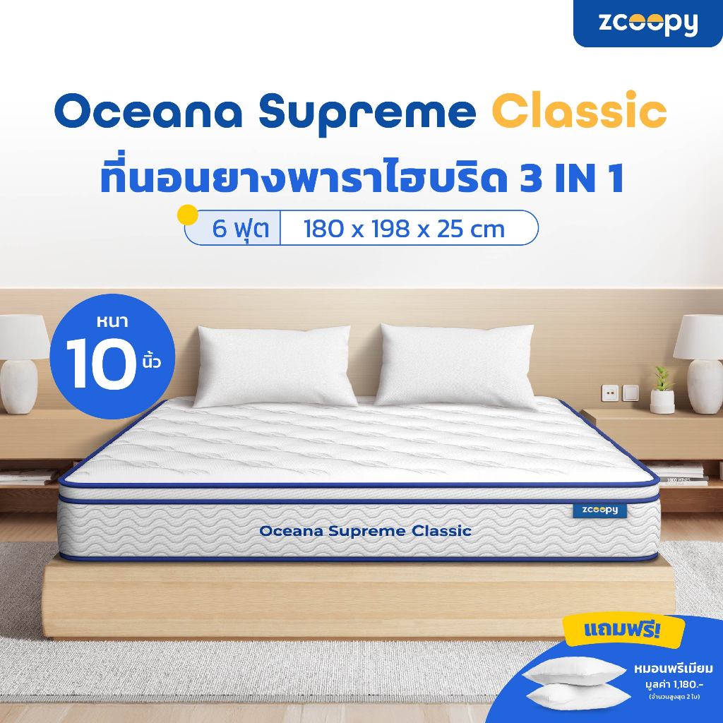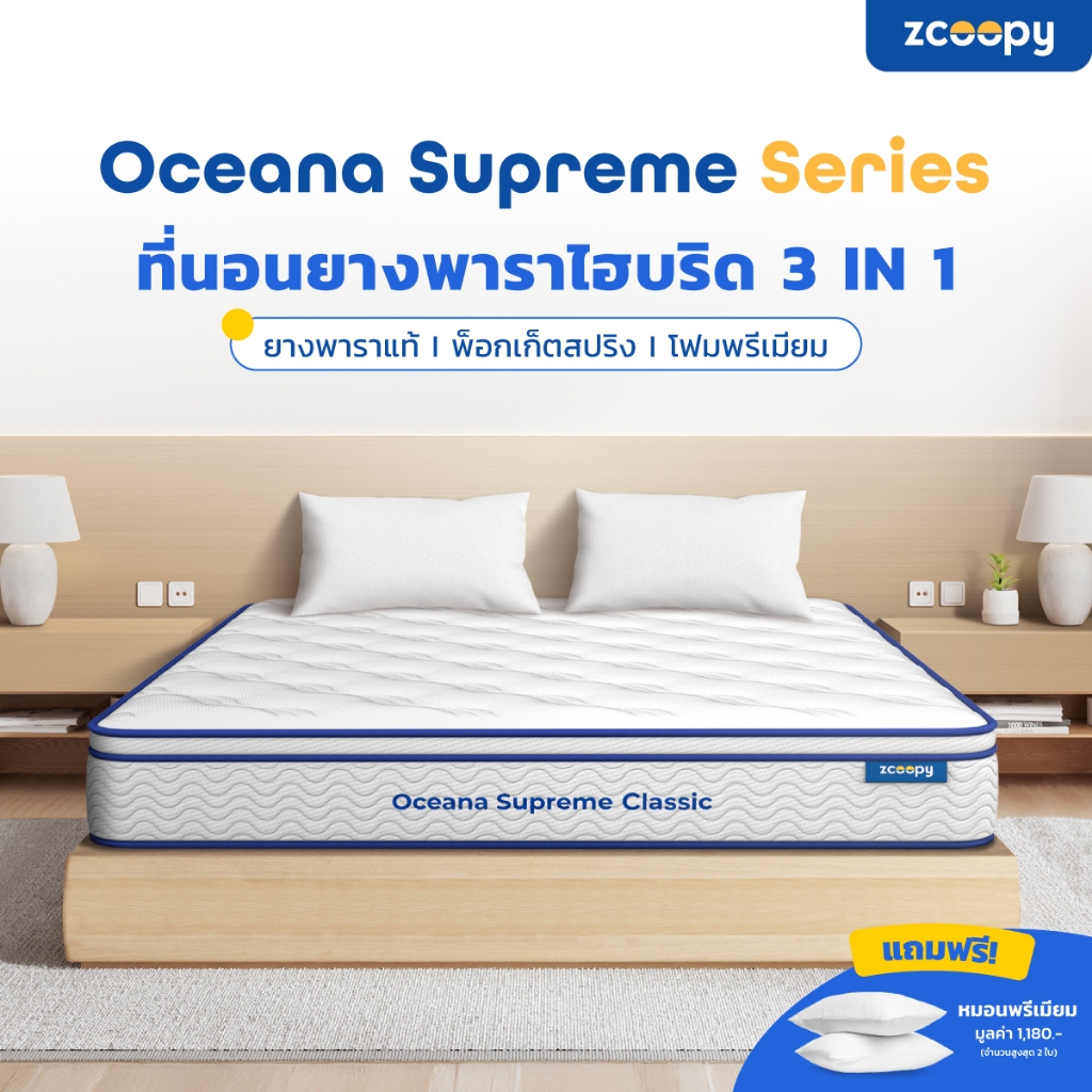 Zcoopy ที่นอนยางพารา พ็อกเก็ตสปริง ผสาน3วัสดุคุณภาพเมมโมรี่โฟมคูลเจล รุ่น Oceana Supreme Classic