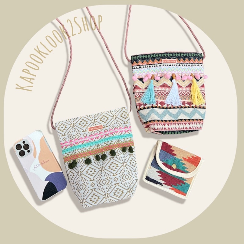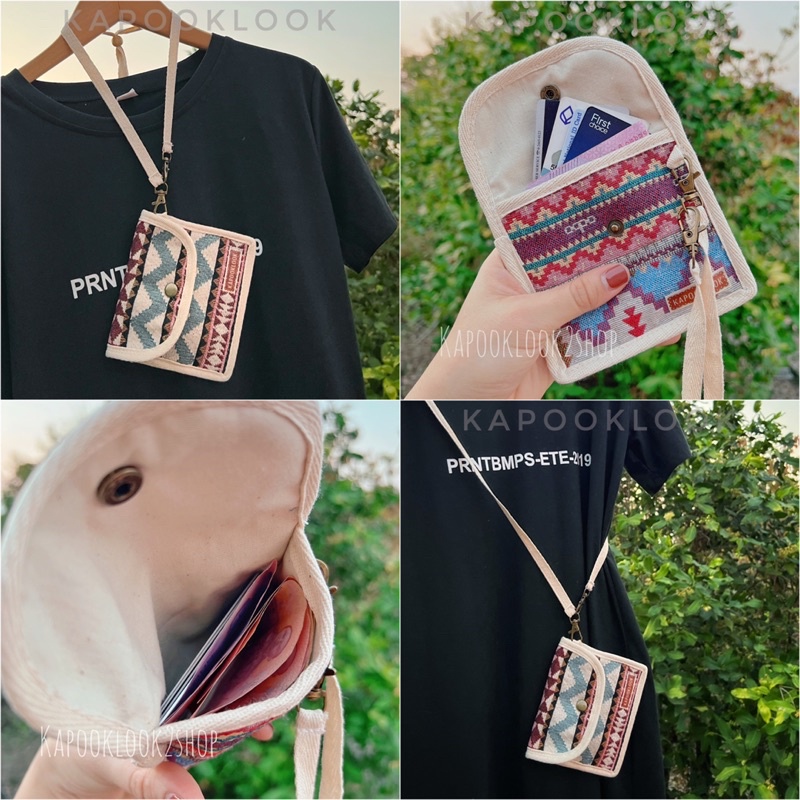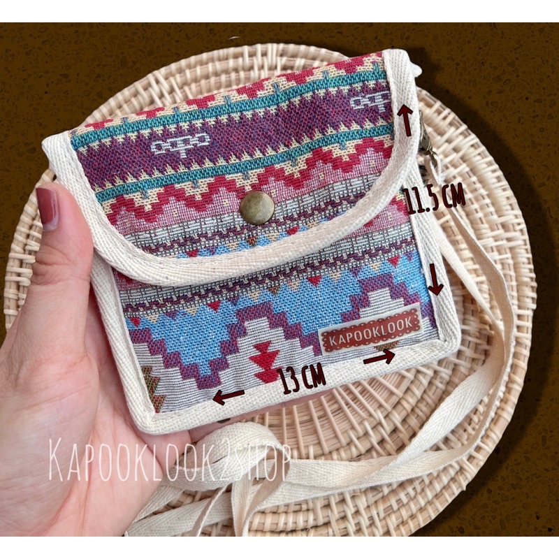 กระเป๋าสตางค์ ผ้าทอ 🔖 กระเป๋าผ้าทอ ห้อยคอ ลายกราฟฟิก โบฮีเมียน🧣
