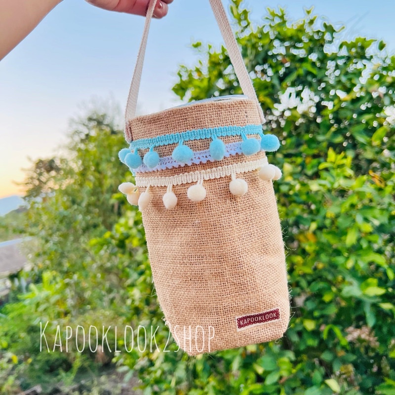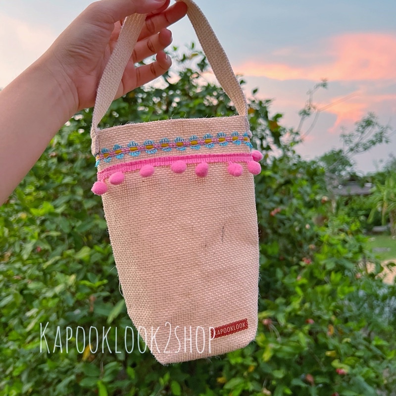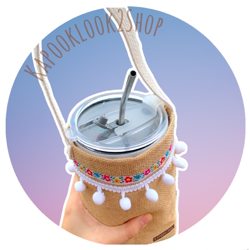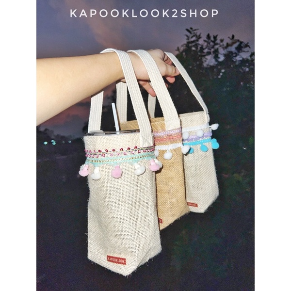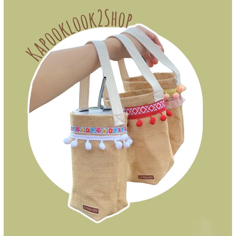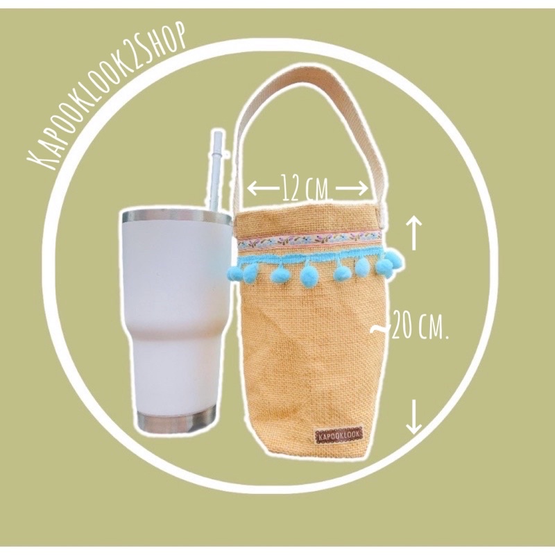 ถุงใส่แก้วน้ำ หิ้ว ถุงผ้ากระสอบ รักโลก🌿 ใส่แก้ว เยติ 30 oz เก็บความเย็น YETI กระเป๋าใส่แก้วน้ำ ของฝาก