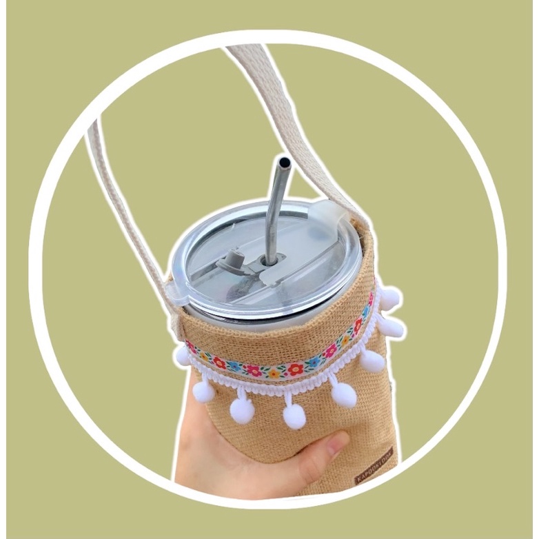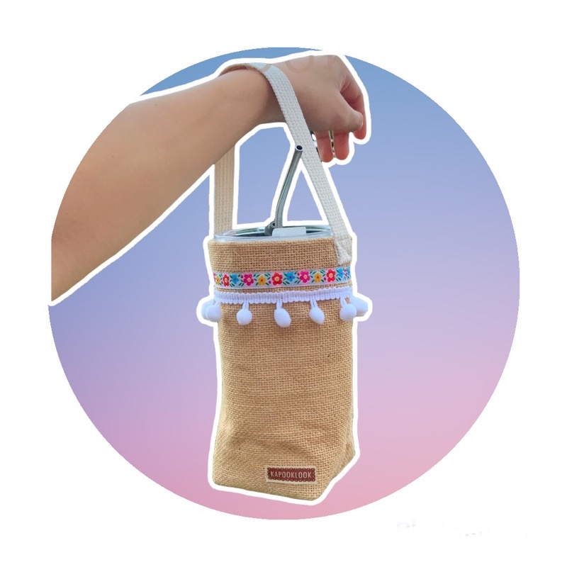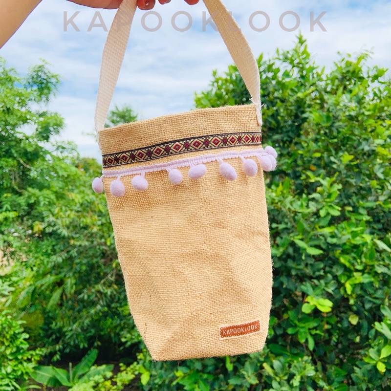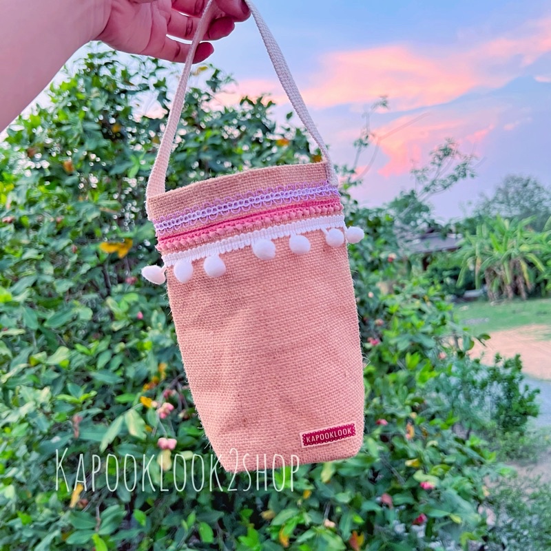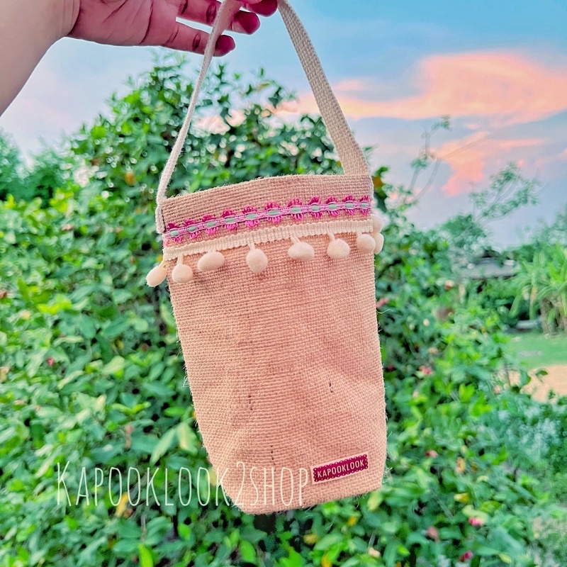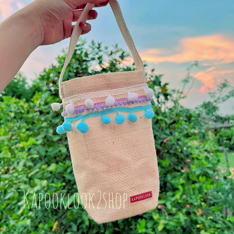 ถุงใส่แก้วน้ำ หิ้ว ถุงผ้ากระสอบ รักโลก🌿 ใส่แก้ว เยติ 30 oz เก็บความเย็น YETI กระเป๋าใส่แก้วน้ำ ของฝาก