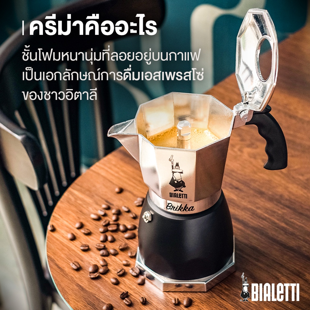 Bialetti หม้อต้มกาแฟ Moka Pot รุ่น Brikka 2020 (บริกก้า) ขนาด 4 ถ้วย – Silver/Black [BL-0007314]