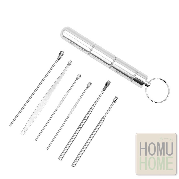 【HOMUHOME ホーム】ชุดไม้แคะหู สแตนเลส พร้อมกล่องใส่ ไม้แคะหู ที่แคะหู อุปกรณ์แคะหู 6-8ชิ้น แคะหู คุณภาพดี HH6 GZ
