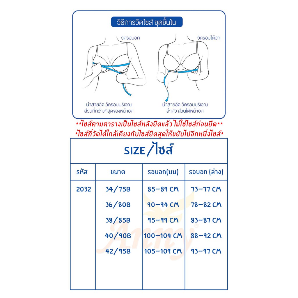 ชุดชั้นใน Anny รุ่น2032 คัพB เสื้อใน บรามีโครง ดันทรง ฟองหนา 1cm ดันพอดี ทรงสวย สวมใส่ง่ายสบาย