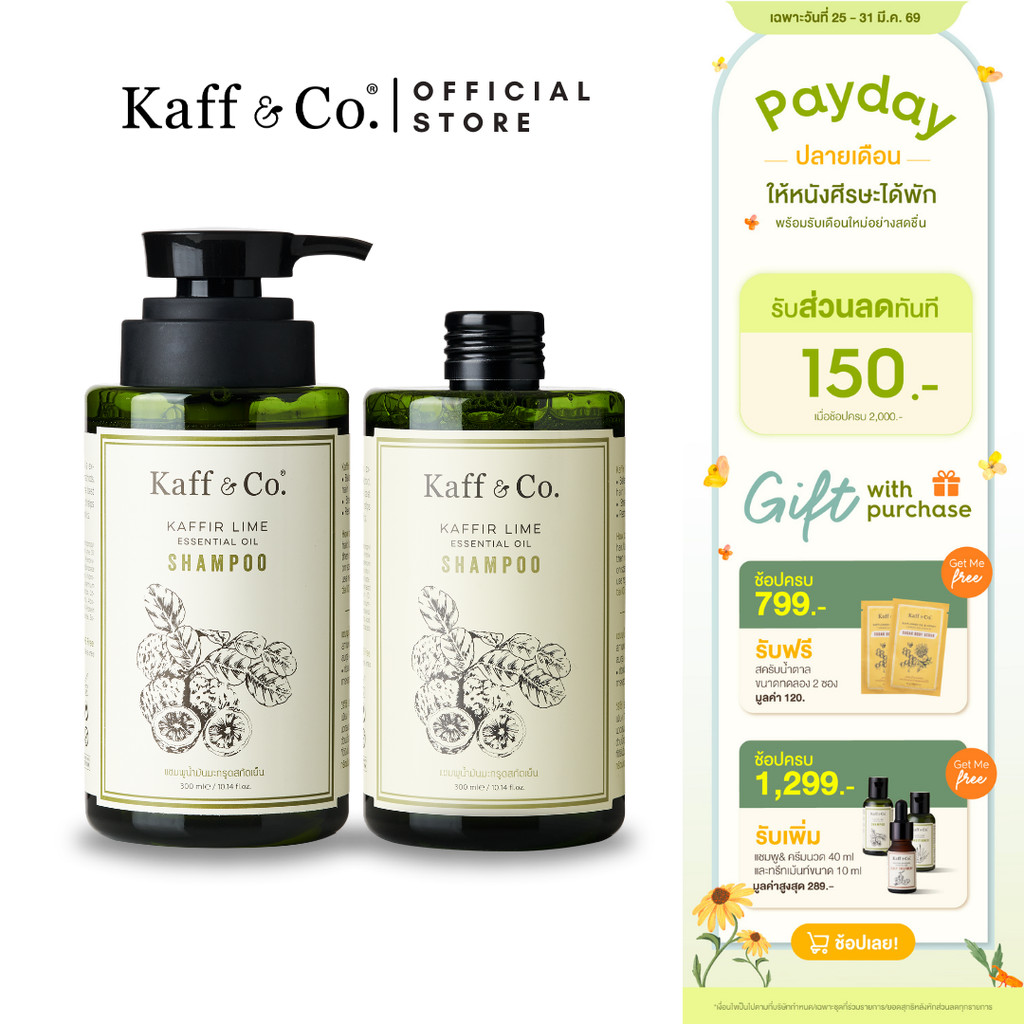 Kaff & Co. ชุด SAVER SET แชมพูน้ำมันมะกรูดสกัดเย็น (300ml + รีฟิล 300ml) หนังศีรษะปกติ-แห้ง, คันง่าย, หนังศีรษะไม่สมดุล