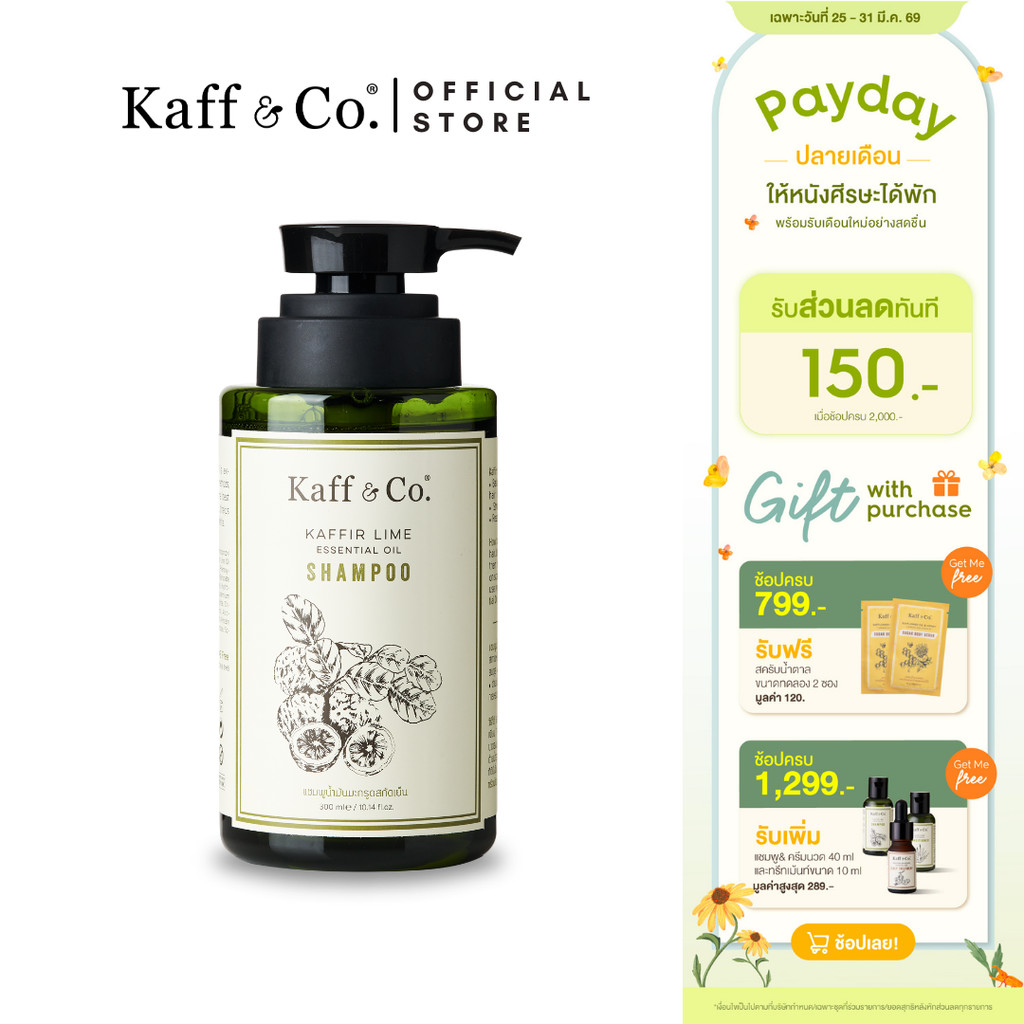 Kaff & Co. แชมพูขจัดรังแค ลดอาการคัน ช่วยลดผมร่วงเมื่อใช้เป็นประจำ แชมพูน้ำมันมะกรูดสกัดเย็น 300 ml