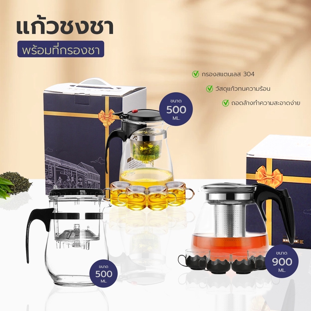แตกรับเคลม กาชงชา แก้วชงชา 500ML กาต้มน้ำร้อน กาน้ำชา แก้วชา พร้อมที่กรองชา