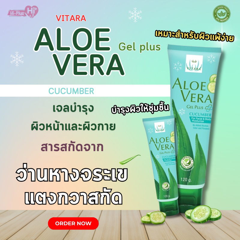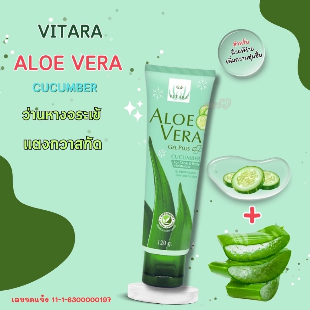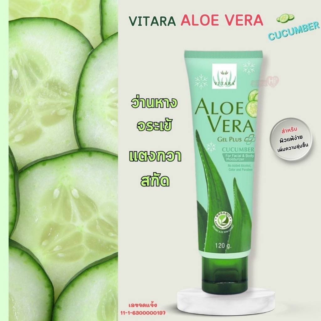VITARA ALOE VERA GEL PLUS CUCUMBER เจลว่านหางจระเข้ สูตรผสมแตงกวาสกัด ขนาด 120 g. (1หลอด)