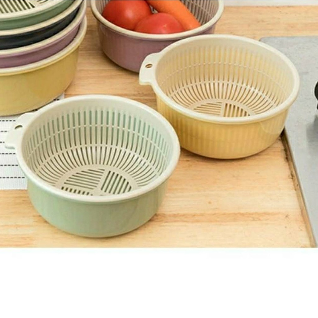 🥒ตะกร้าล้างผัก ตะกร้าล้างผลไม้ ตะกร้าสองชั้น ใช้สำหรับล้างผัก ล้างผลไม้ มีรูระบายน้ำ ทำจากพลาสติกเกรด A #G-0008