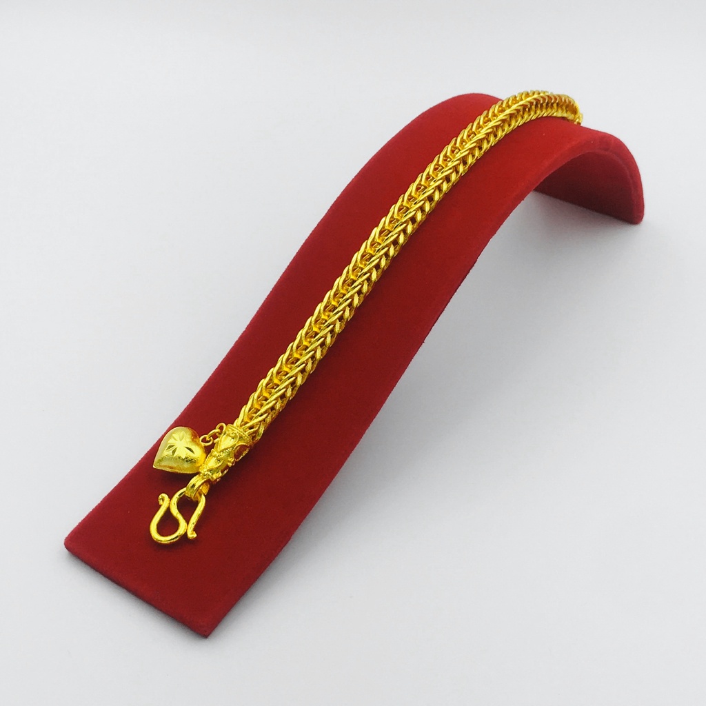 สร้อยข้อมือแฟชั่น ลายสี่เสาหัวใจจิกเพชร น้ำหนัก 2 บาท ยาว7.5นิ้ว งานเคลือบแก้วชุบเศษทองเยาวราช โค้ด9.9 MTRPDSEP9
