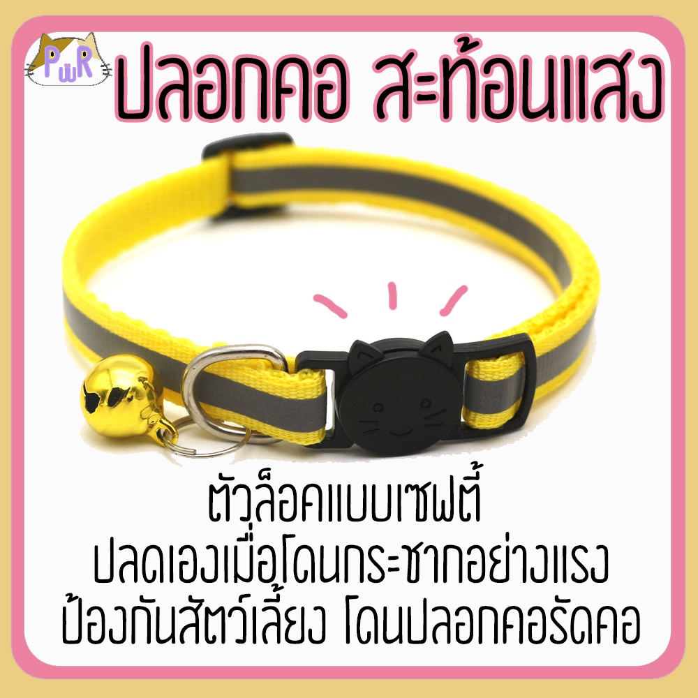 ปลอกคอแมวนิรภัย เซฟตี้ สะท้อนแสง reflective cat collar safety lock [แถบ]