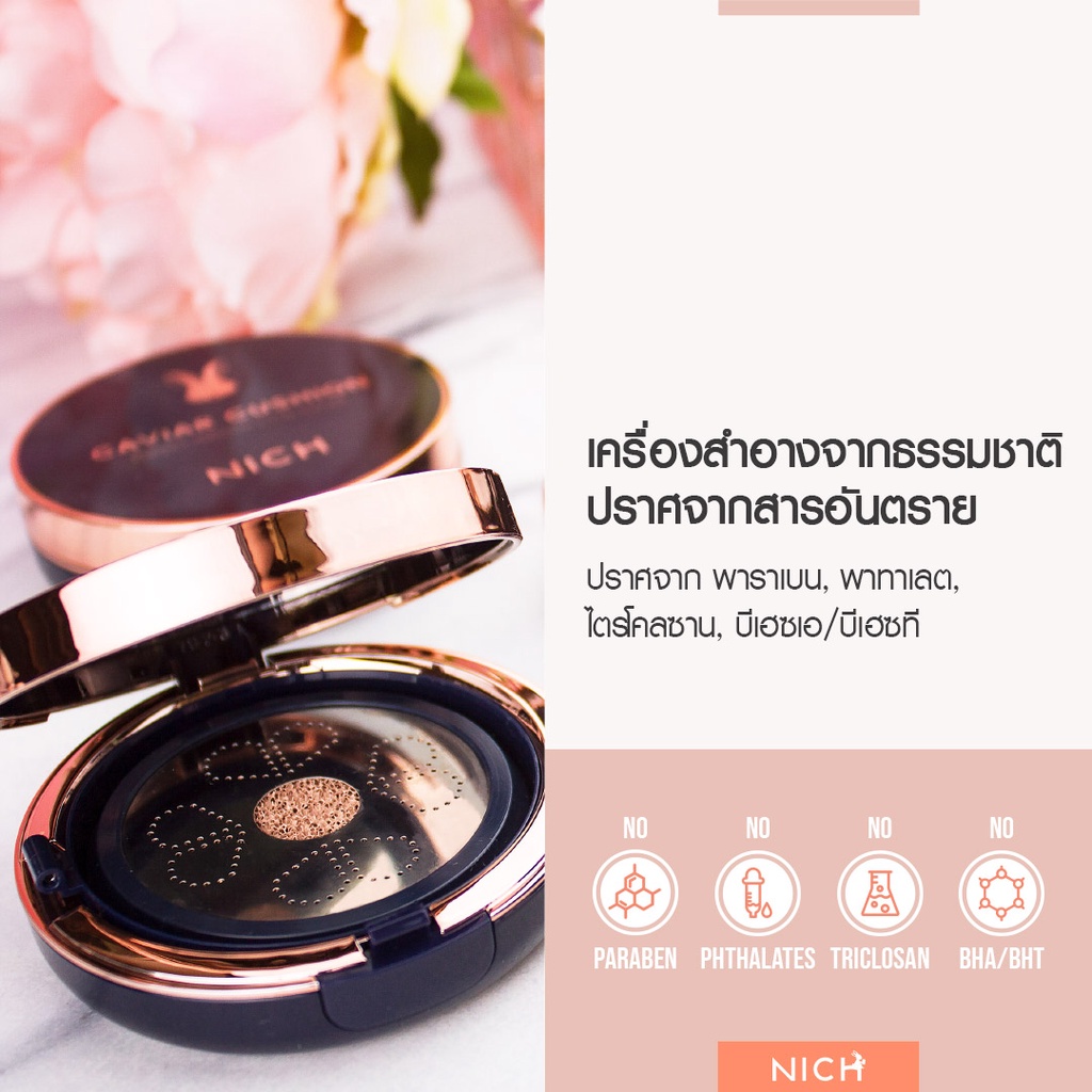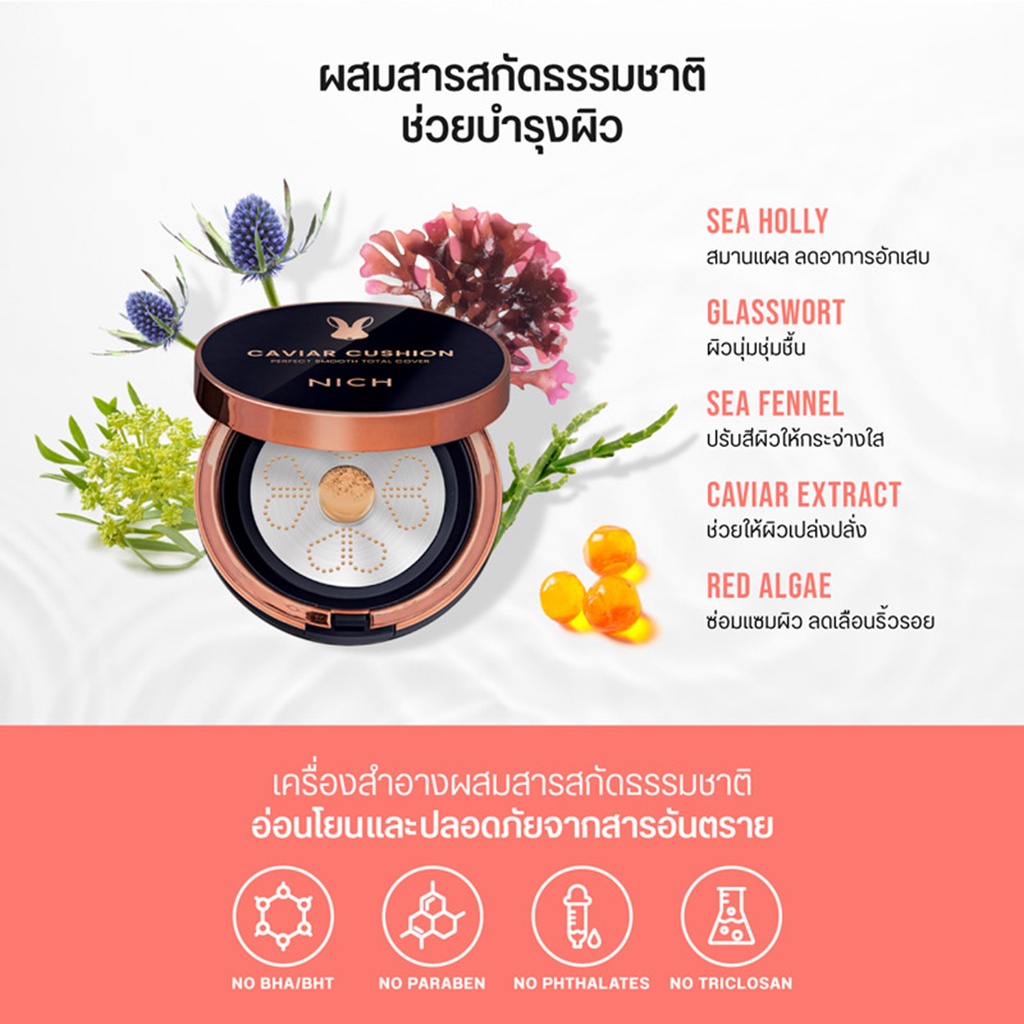 [ซื้อ1แถม1] NICH คุชชั่นผิวเนียนฉ่ำใส Caviar Cushion SPF 50+ PA++++ [EXP: 10/2570]