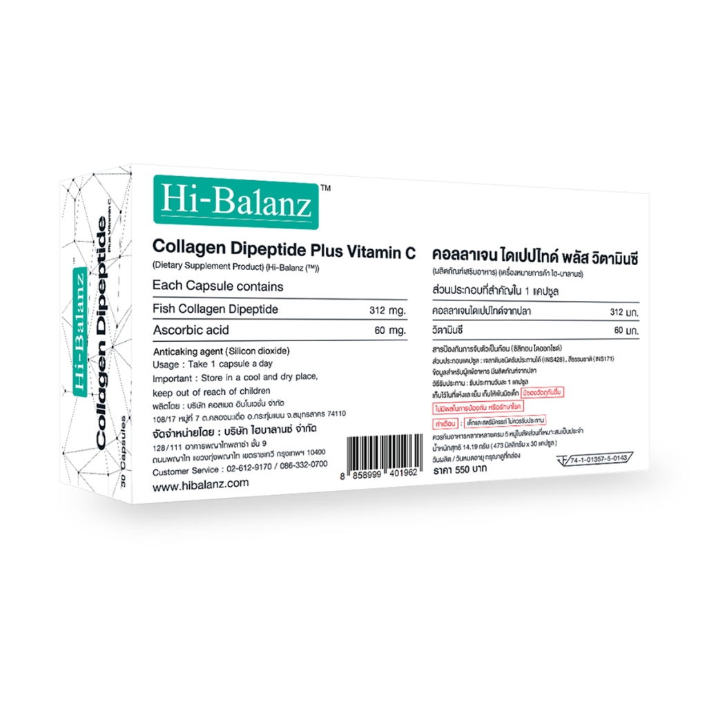 [ผลิตภัณฑ์ดูแลผิว] Hi-Balanz Collagen Dipeptide Plus Vitamin C คอลลาเจน ได เปปไทด์ พลัส วิตามินซี 1 กล่อง 30 แคปซูล