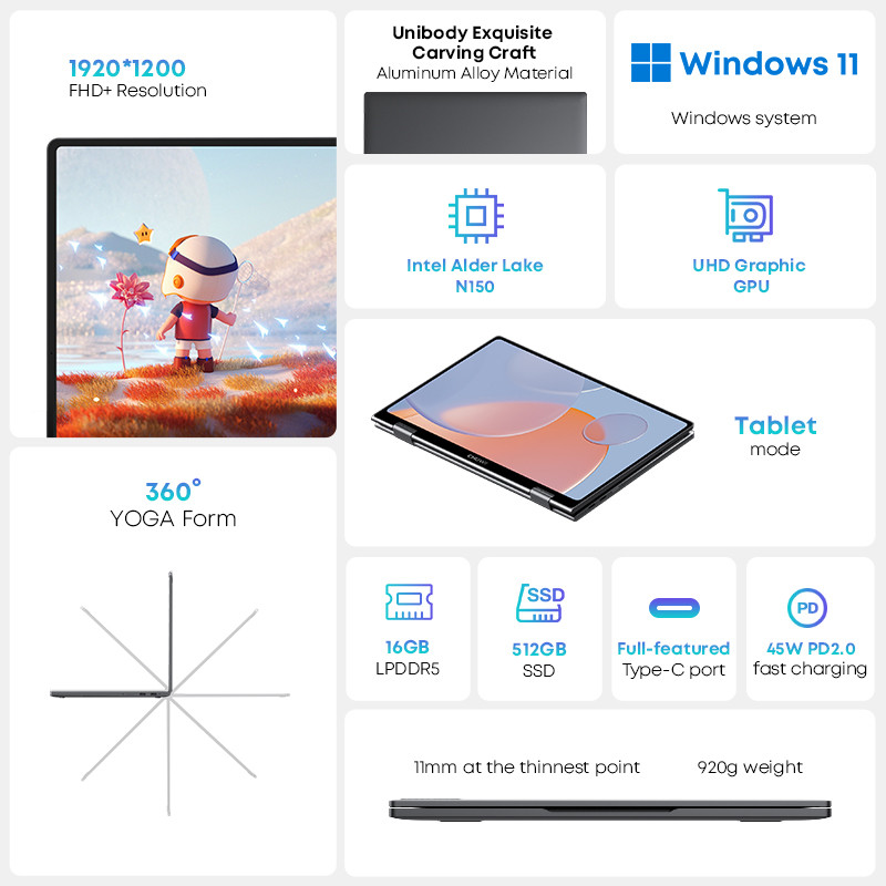 Chuwi Minibook X 1-In-2 Tablet With Intel N150 10.51-Inch Fhd Ips Screen Lpddr5 12Gb 512G Ssd Windows 11 1200x1920 Laptop
