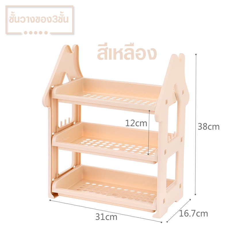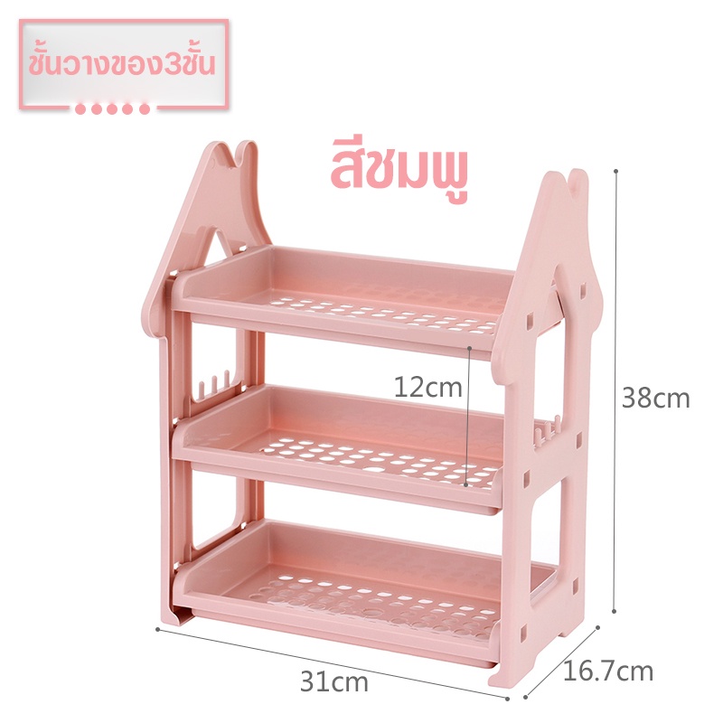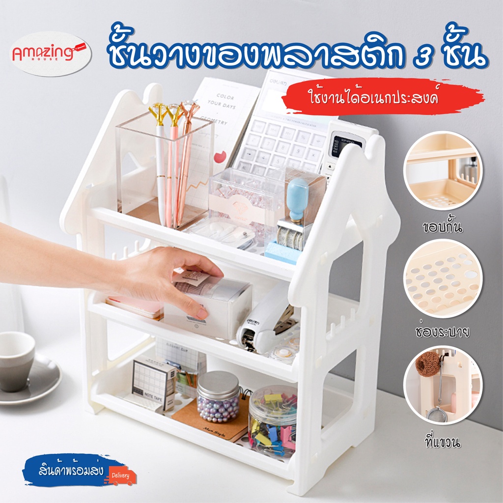 พร้อมส่ง/ชั้นวางของพลาสติกรูปทรงของบ้าน 3 ชั้น ถอดประกอบได้