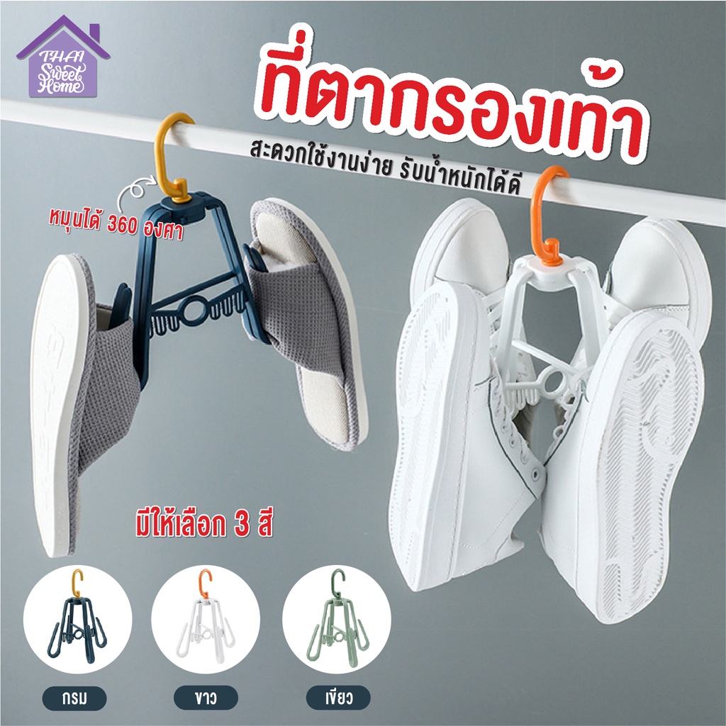 พร้อมส่งthaisweet/ ที่ตากรองเท้า ไม้แขวนรองเท้า ที่ตากอเนกประสงค์พลาสติก พับได้ หมุนได้ 360 องศา