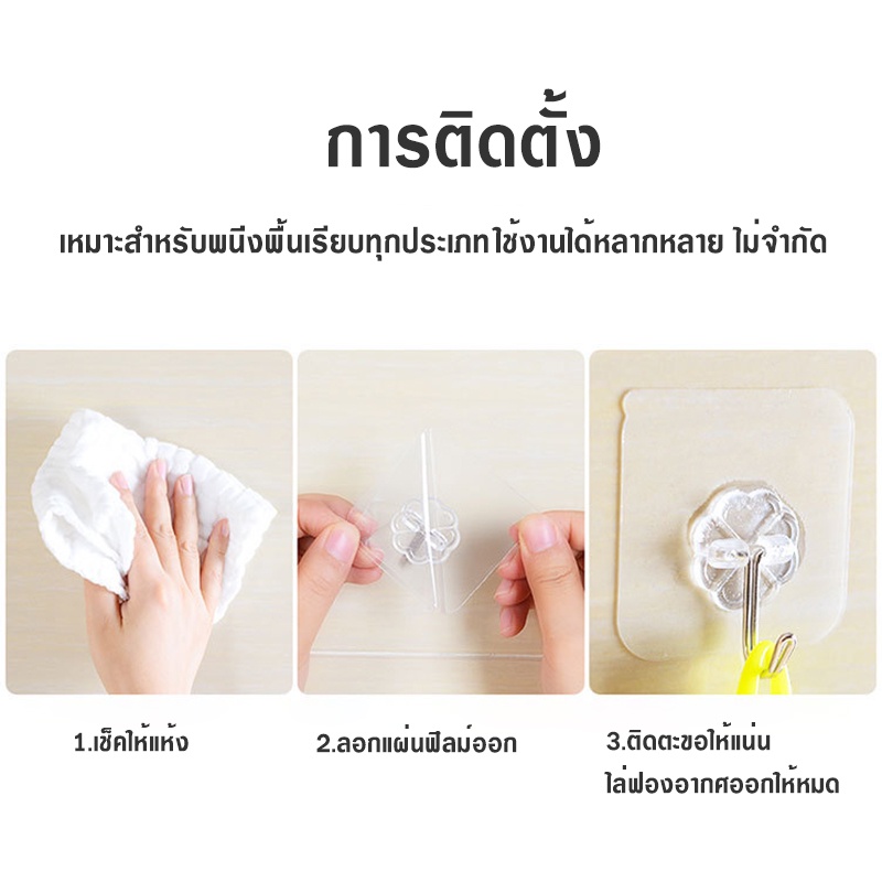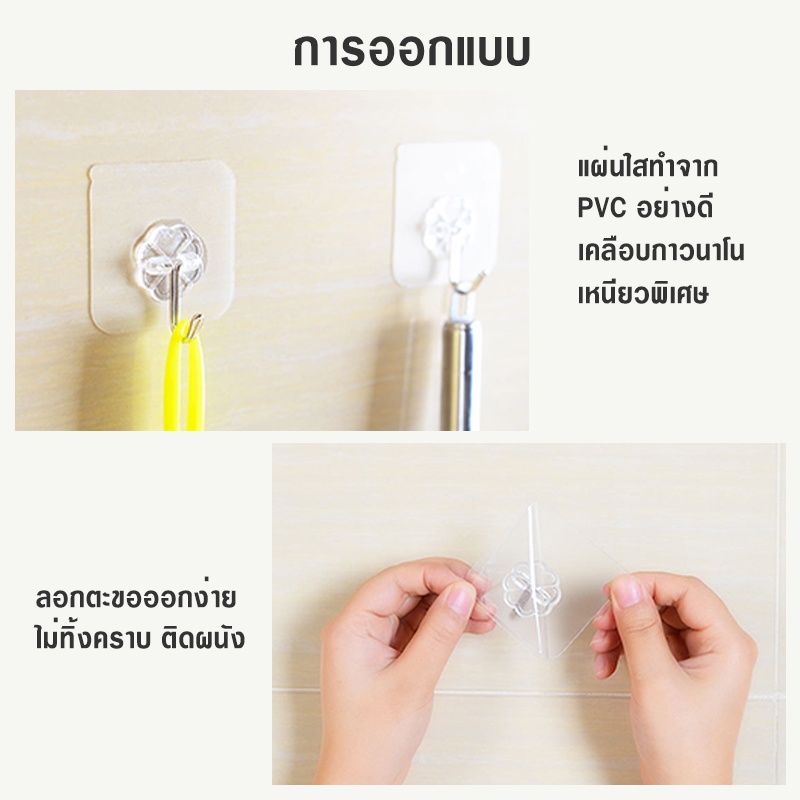 พร้อมส่งkitchenidea/ ที่แขวนติดผนังแบบใส ตะขอแขวนติดผนัง อเนกประสงค์ไม่ต้องเจาะ ตะขอกาวติดผนัง ที่แขวนของ