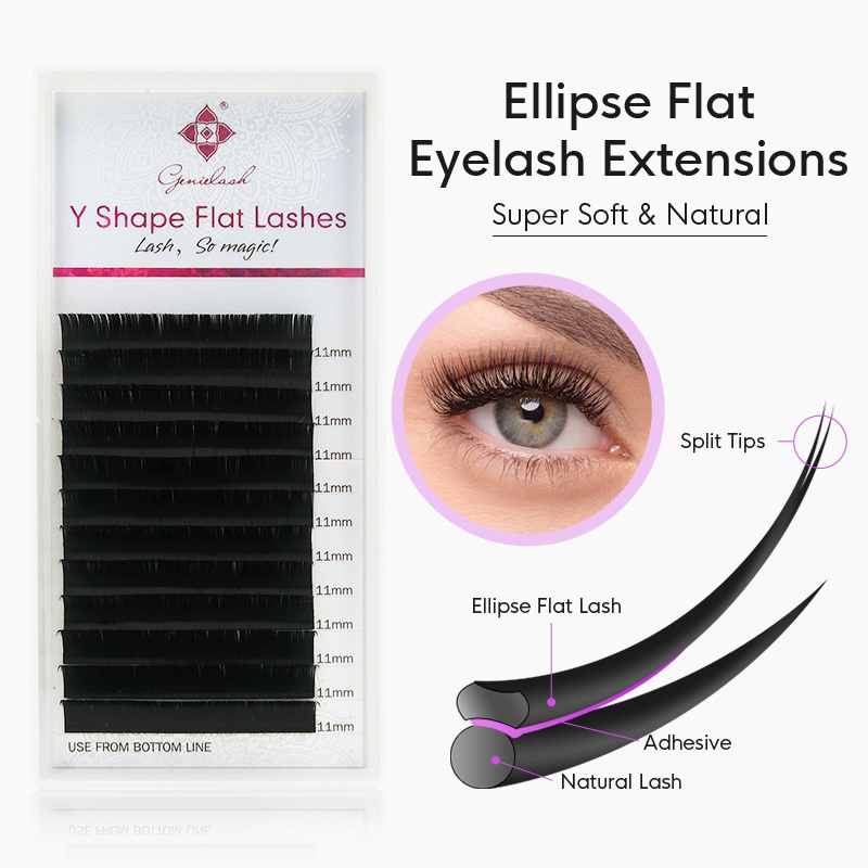 Genielash Matte ellipse ต่อขนตา ปลายแยก รูปไข่ รากแบน ขนตาแต่ละชิ้น นุ่มขึ้นมาก