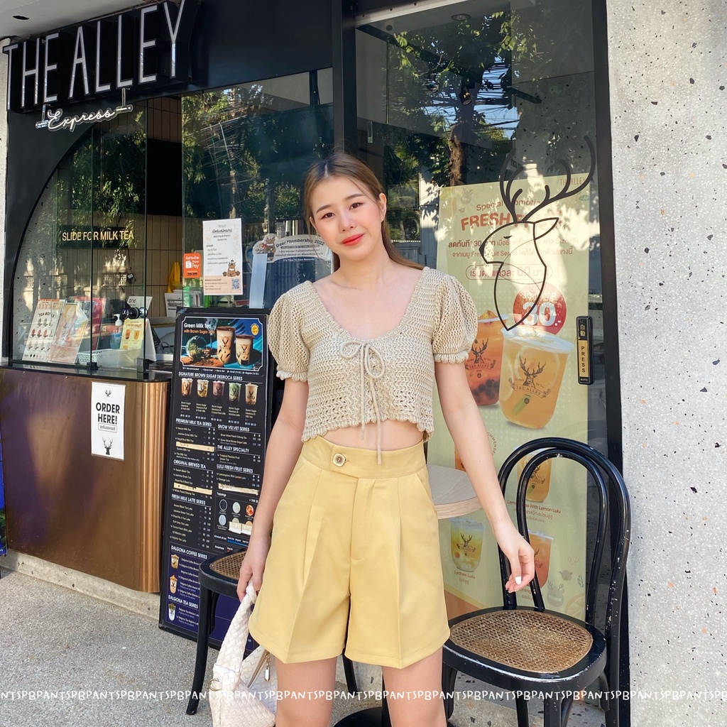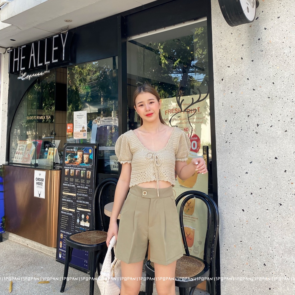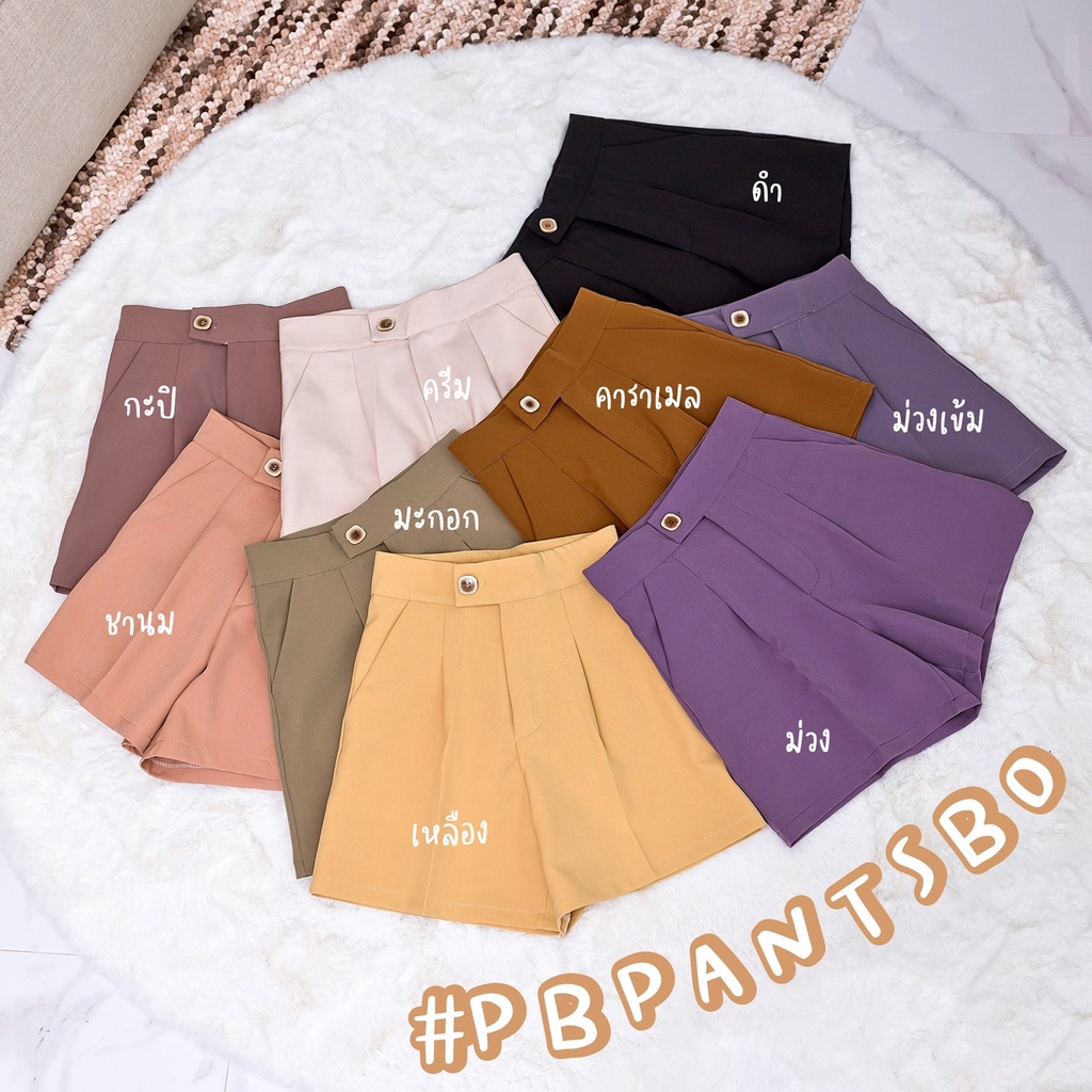 (BO)NEW IN 🎄🎉กางเกงขาสั้นผ้าไมโครแต่งกระดุมหน้า