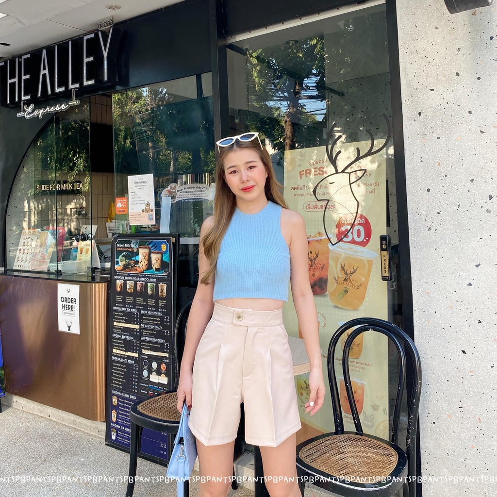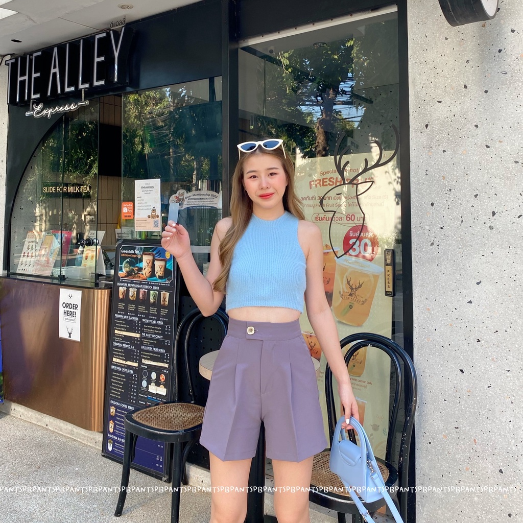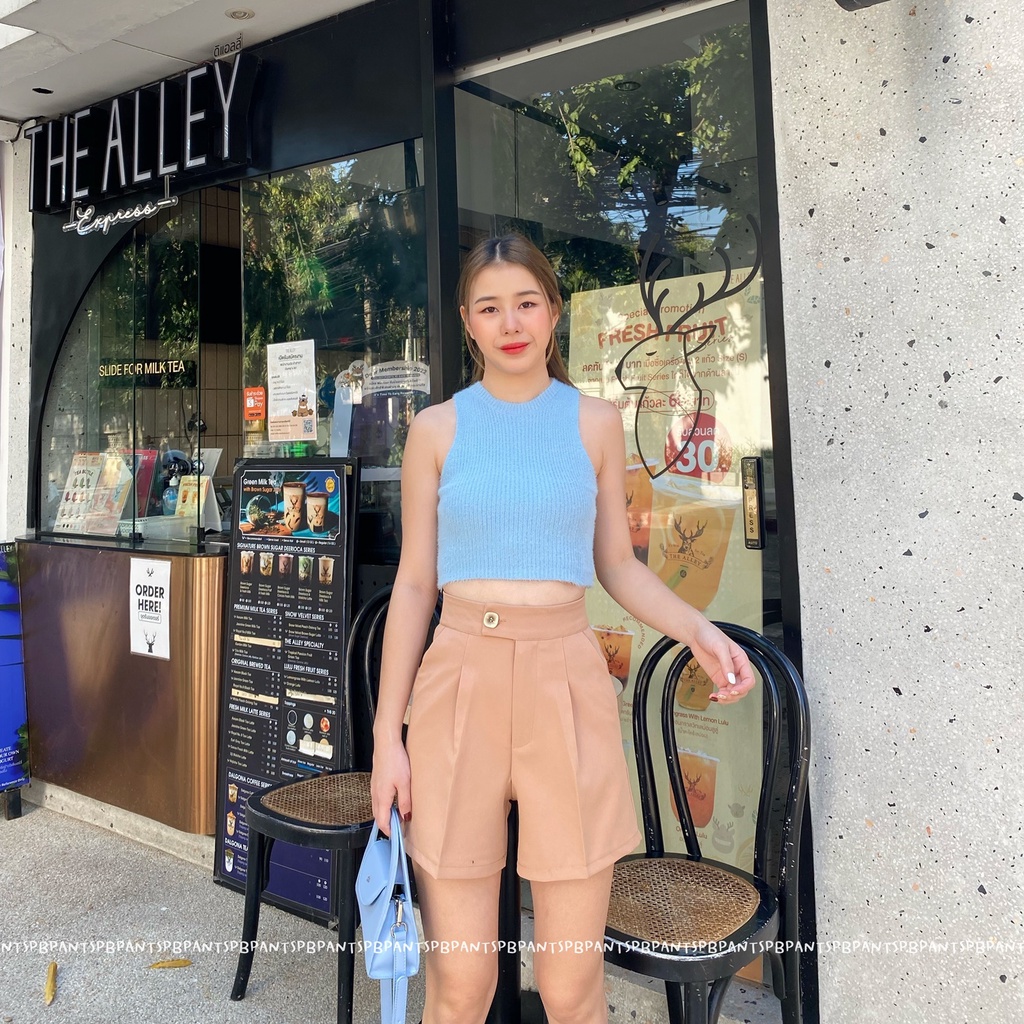 (BO)NEW IN 🎄🎉กางเกงขาสั้นผ้าไมโครแต่งกระดุมหน้า