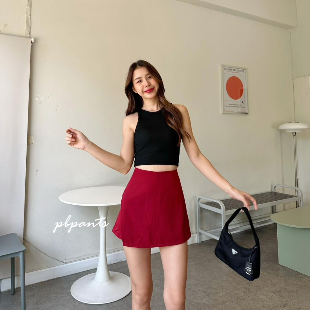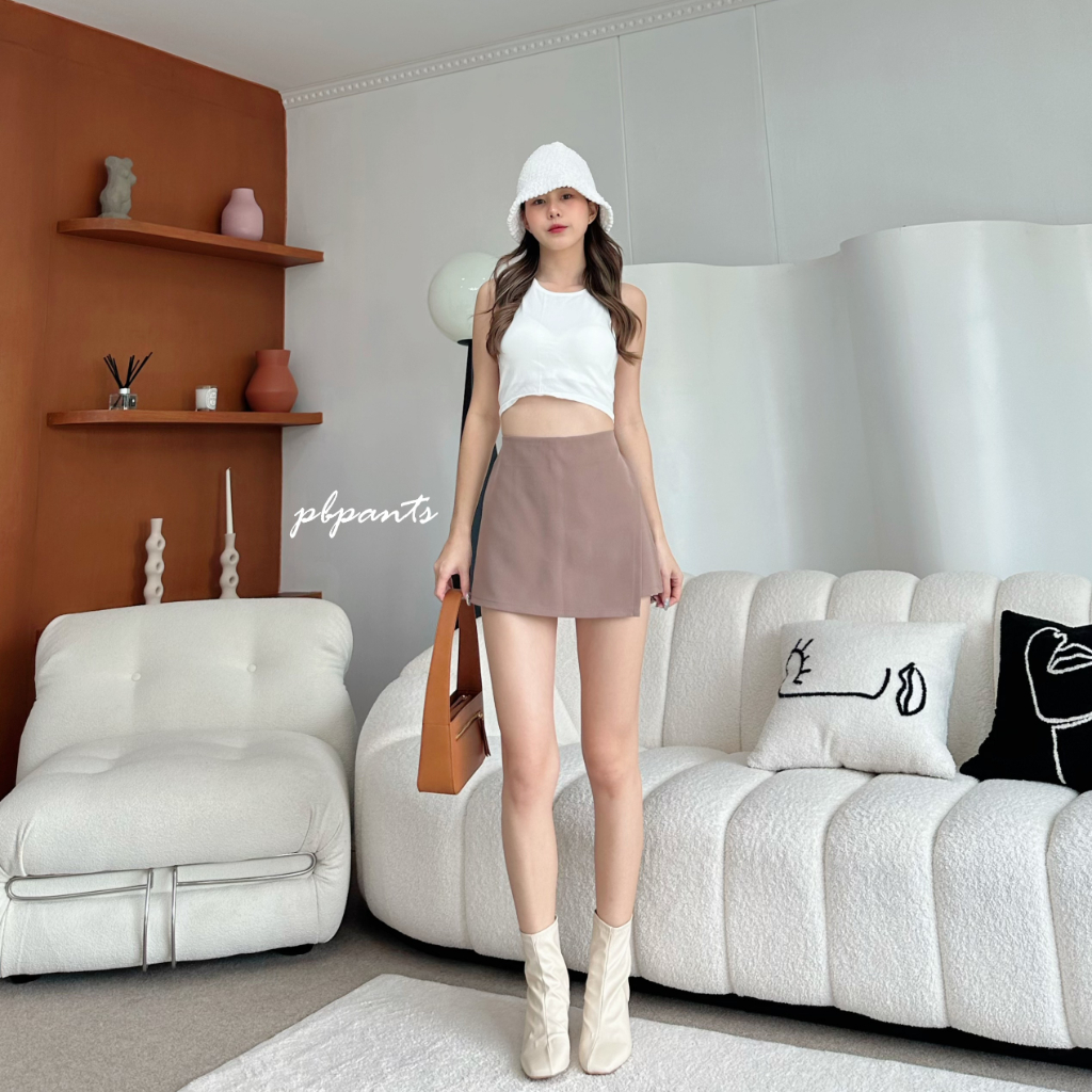 กางเกงกระโปรงขาสั้น เอวสูง ผ้าเปเป้ ดีเทลเบี่ยงหน้า ด้านหลังเป็นกางเกง รุ่น CS Pbpants