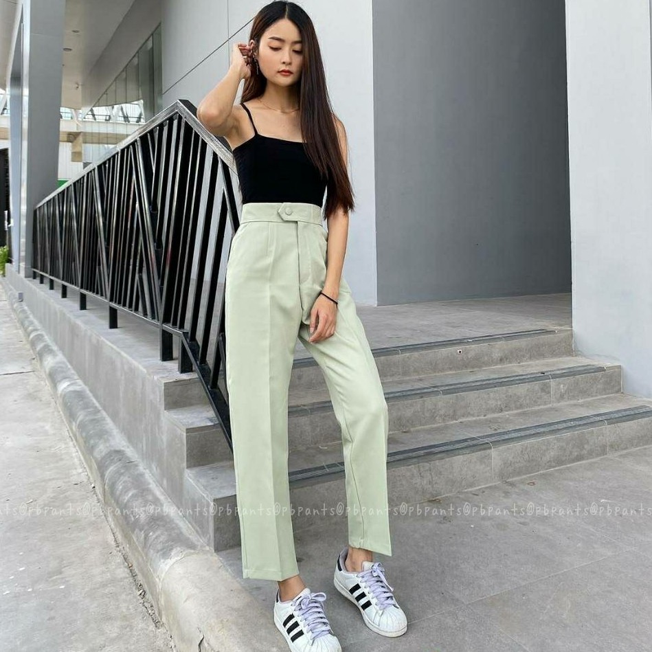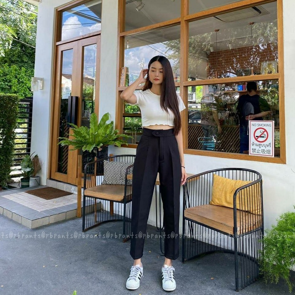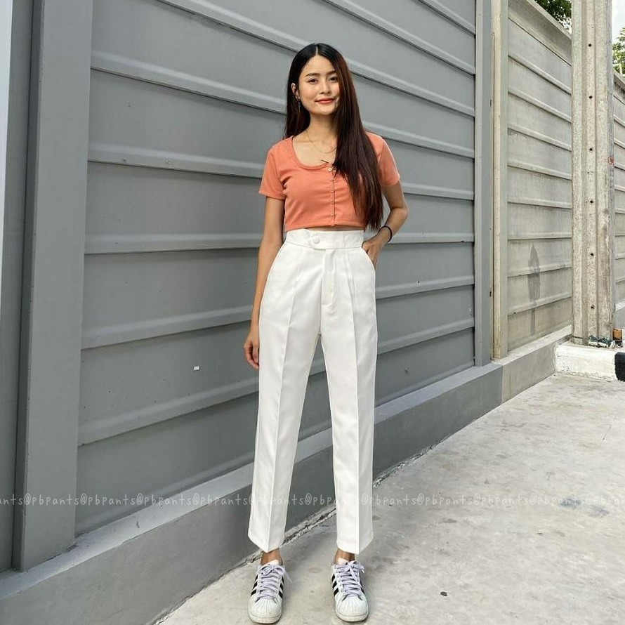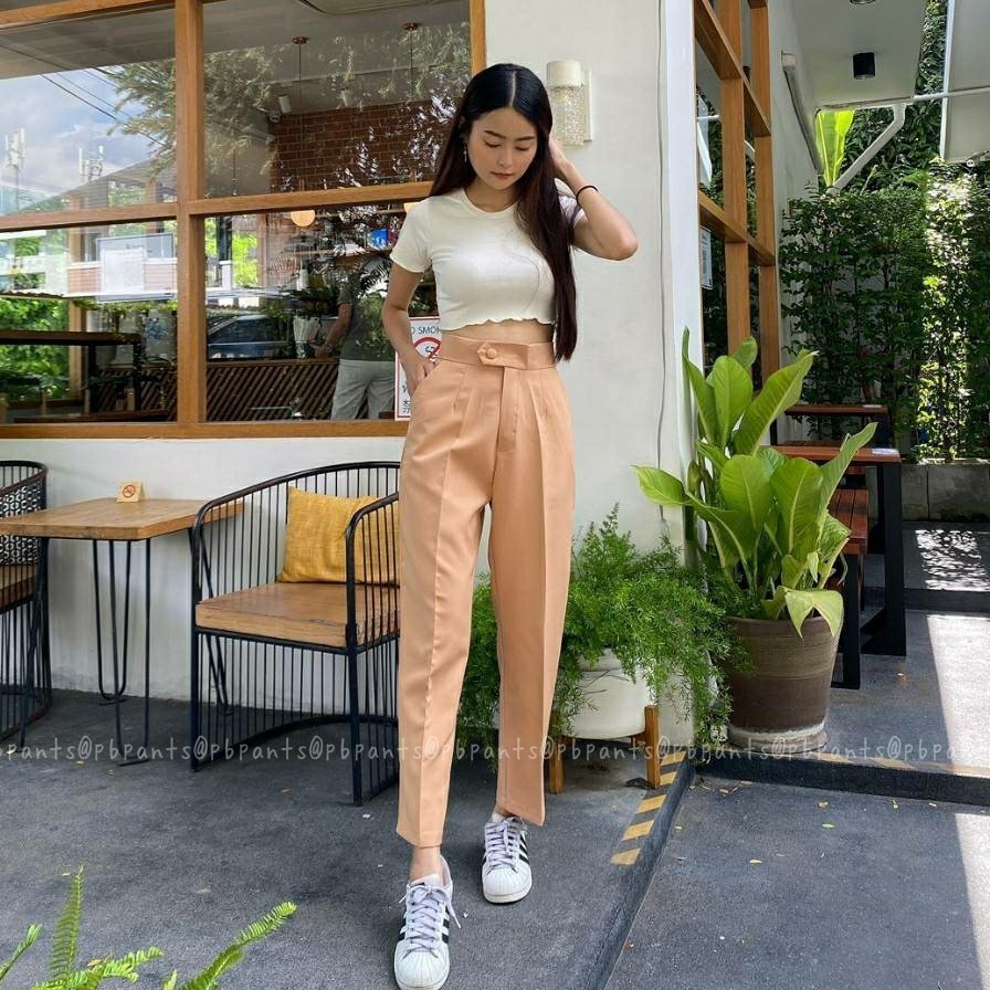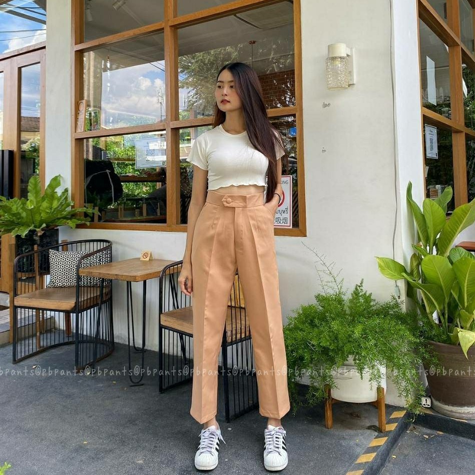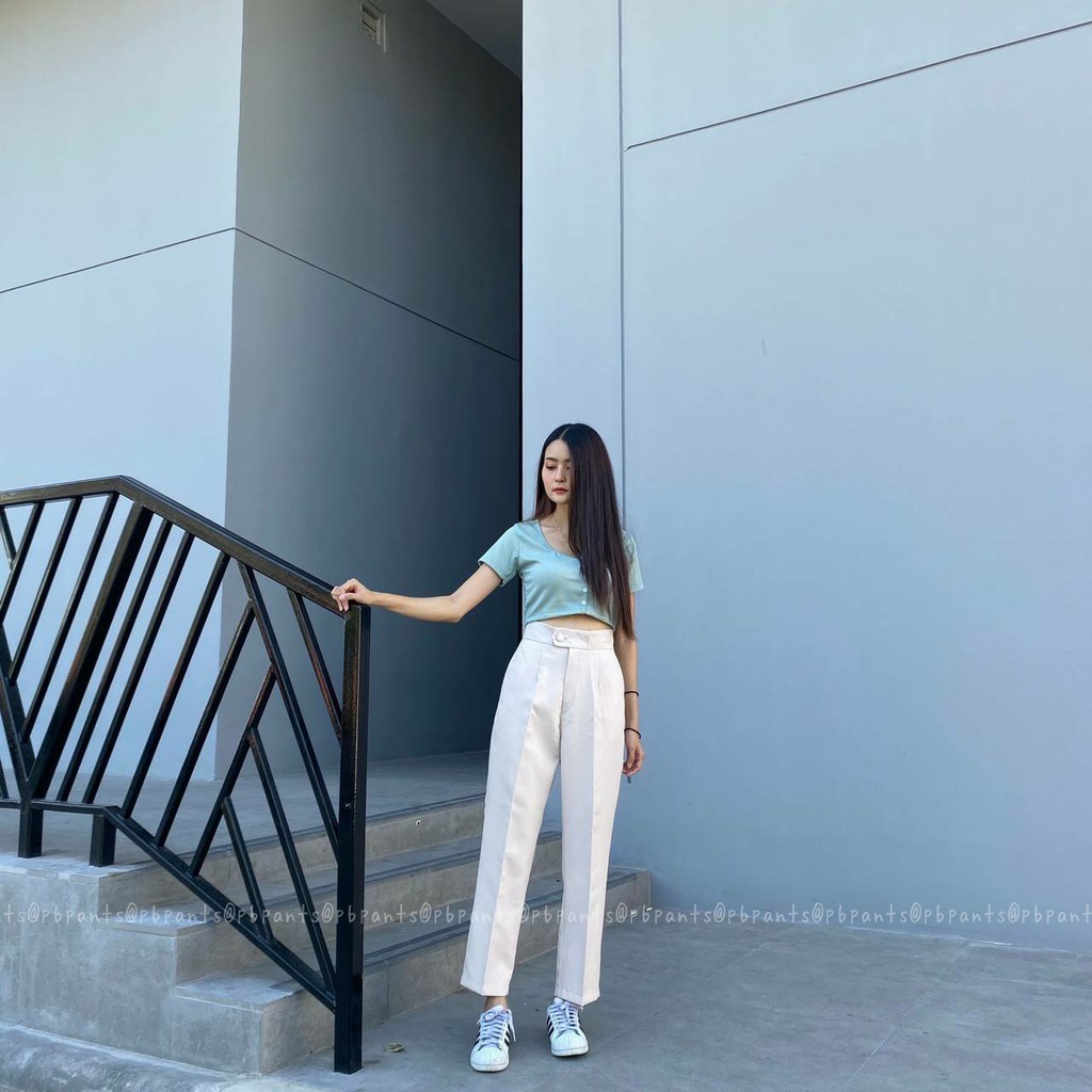 Pbpants✨กางเกงยาวแต่งกระดุมหน้า กางเกงบอลลูนขายาว