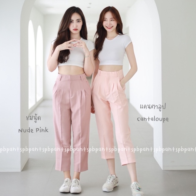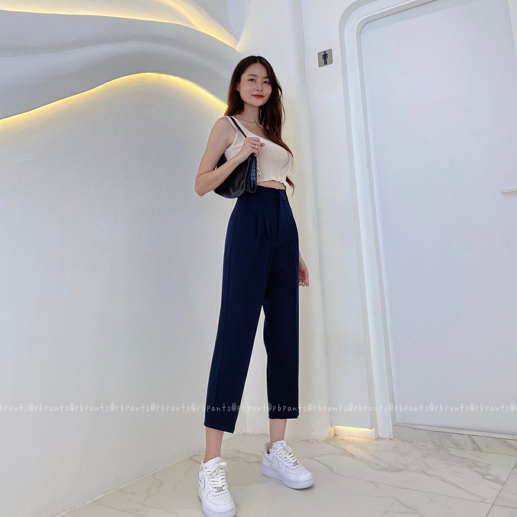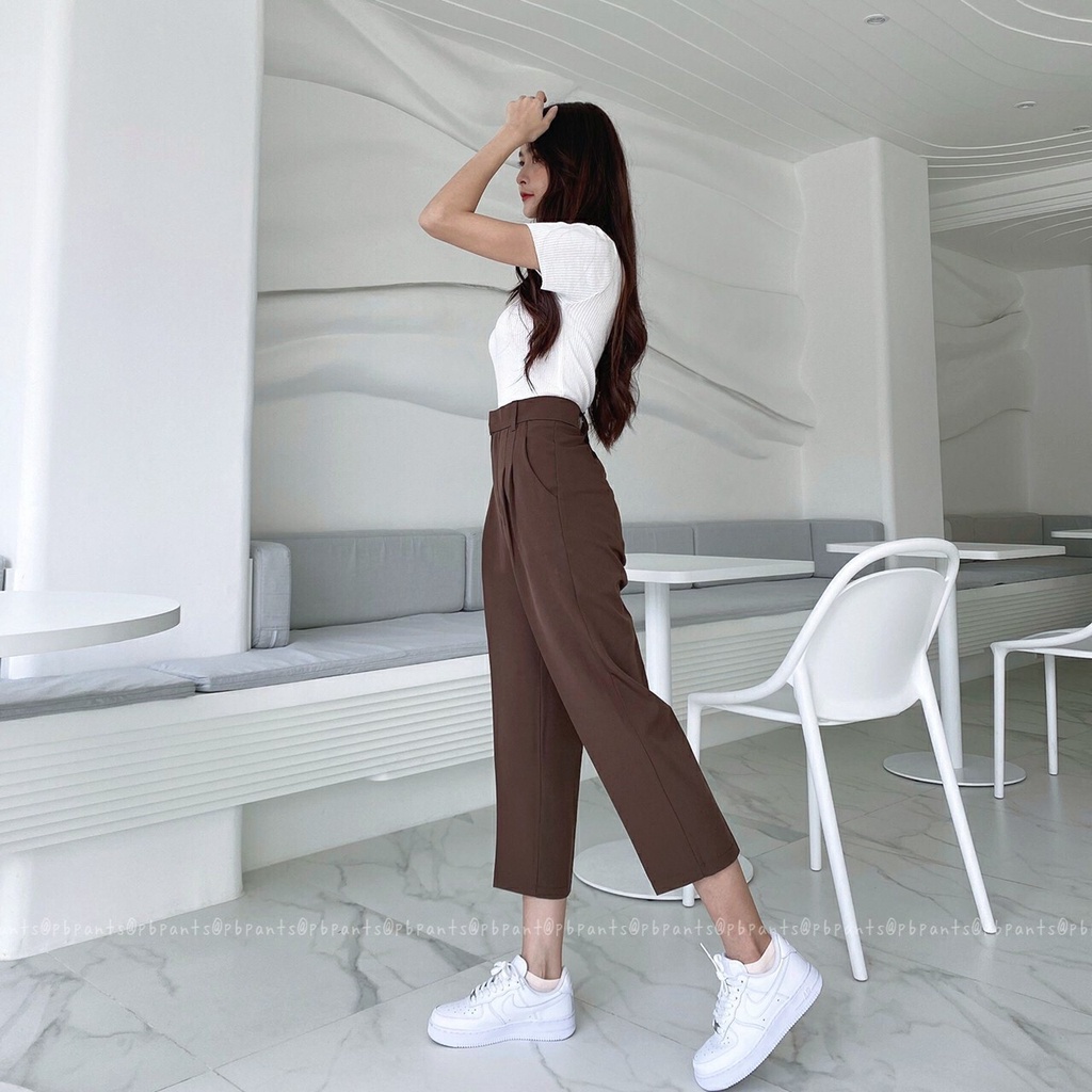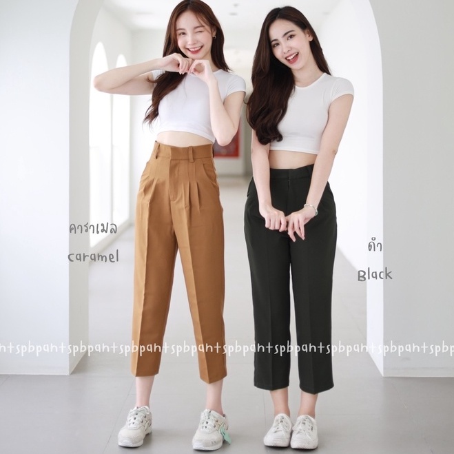 (KK) 🎉🌟Pepe pants กางเกงทรงบอยตะขอหน้าผ้าเปเป้ 7 ส่วน